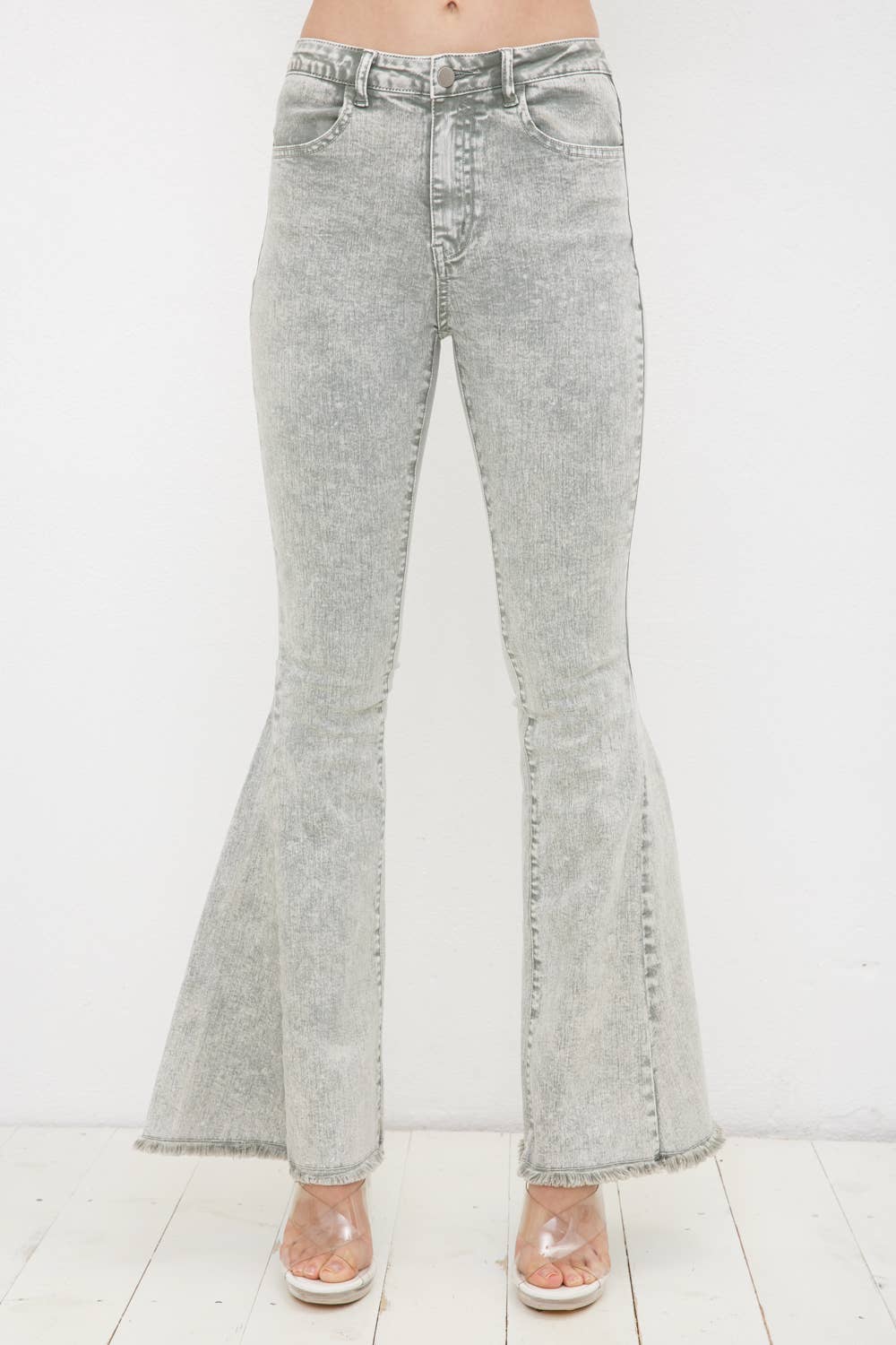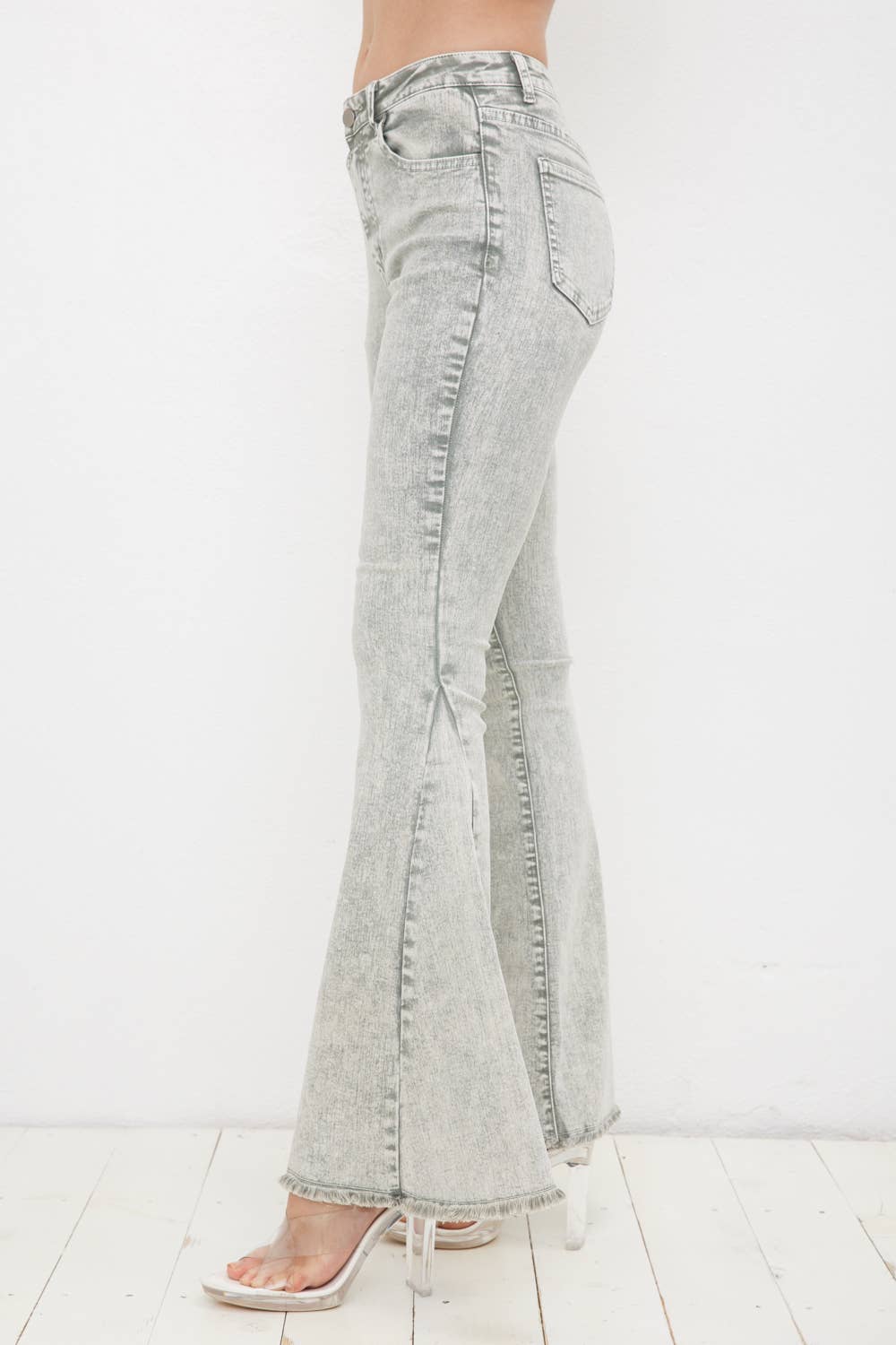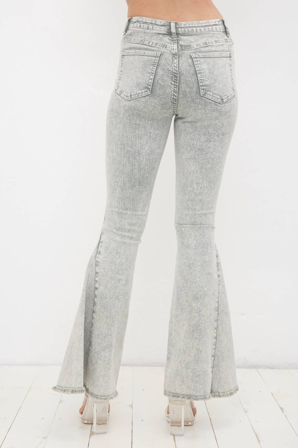 Garment Washed Vintage Distressed Bell Sleeve Denim Pants