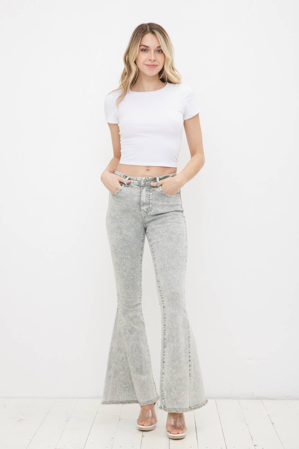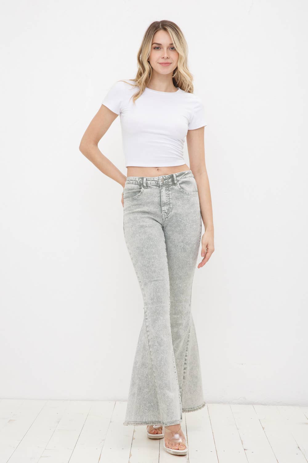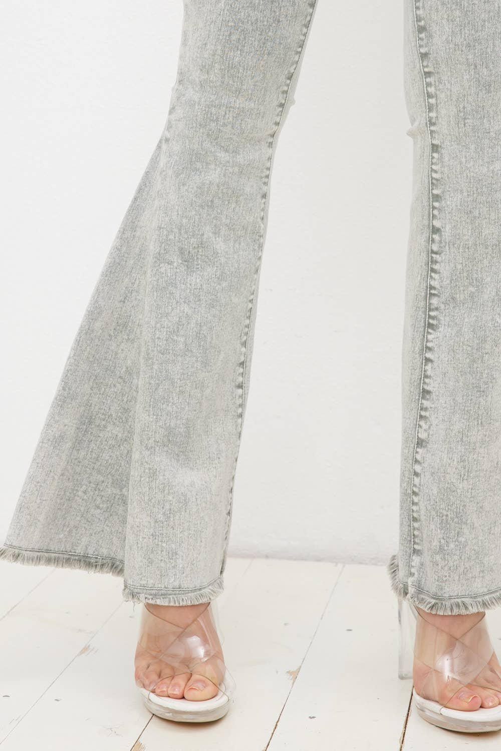 Garment Washed Vintage Distressed Bell Sleeve Denim Pants