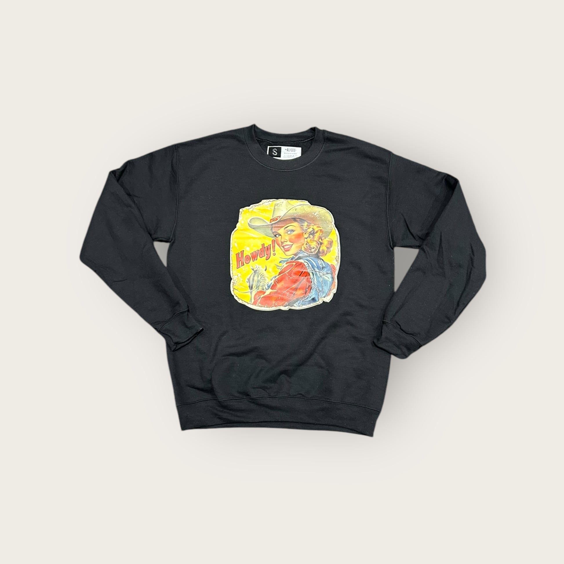 Ali Dee Howdy Vintage Cowgirl Graphic Crewneck in Black