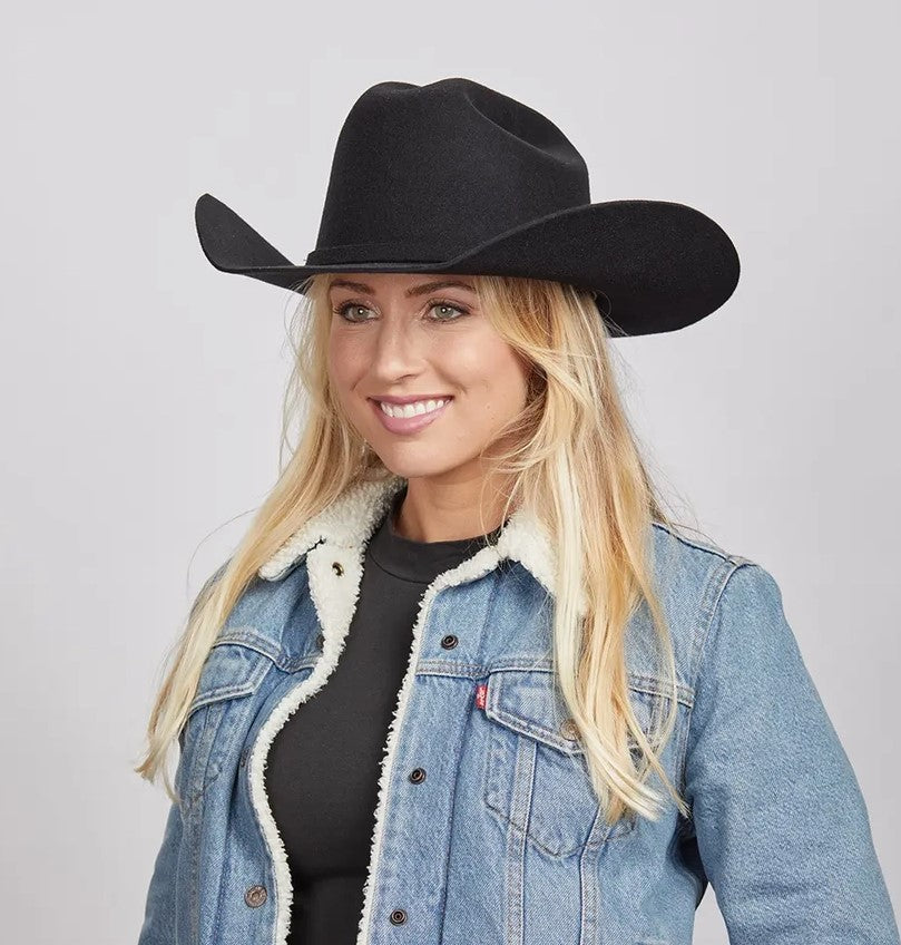 Cattleman | Felt Cowboy Hat offers a classic western look with durable construction. Crafted from Australian wool felt with a silver buckle on the self band, this wide-brim hat is perfect for a traditional cowboy style with sun protection.