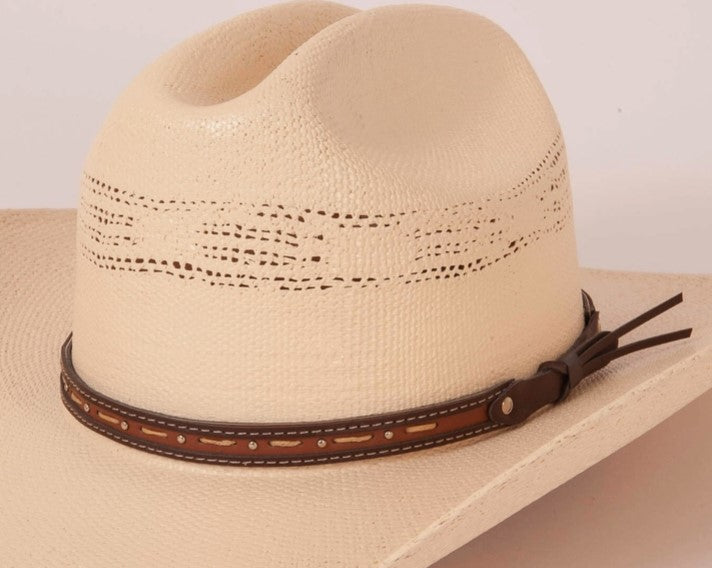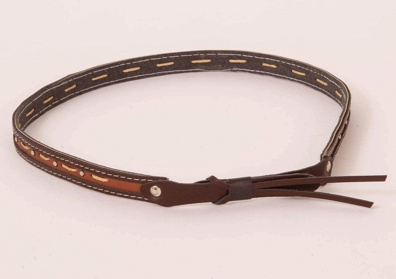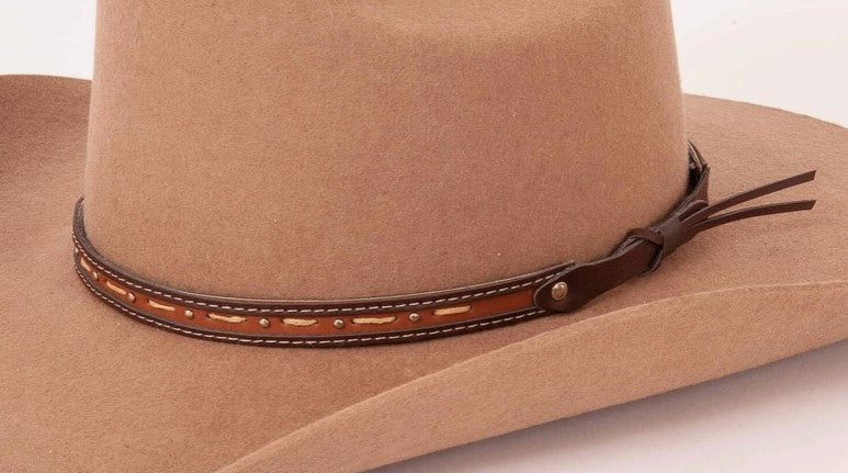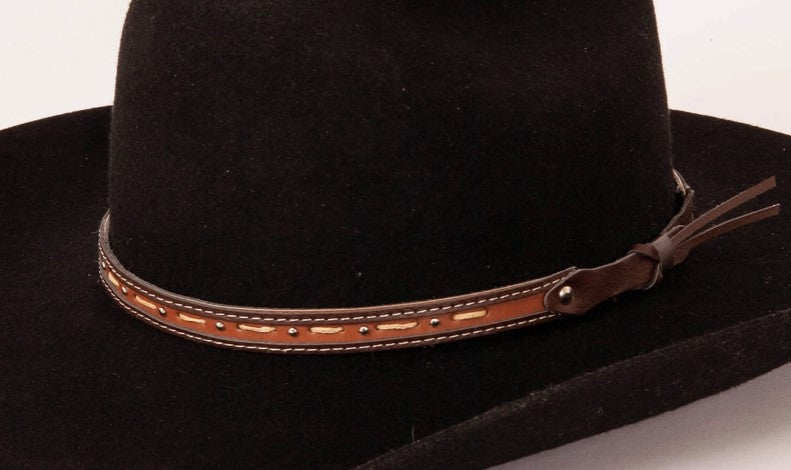 The Dillon hat band is the perfect way to add a touch of style to your look. Made from brown and black leather, it features small studs and detailed stitching. Whether you're headed to the office or out for a night on the town, this hat band will help you make a statement.