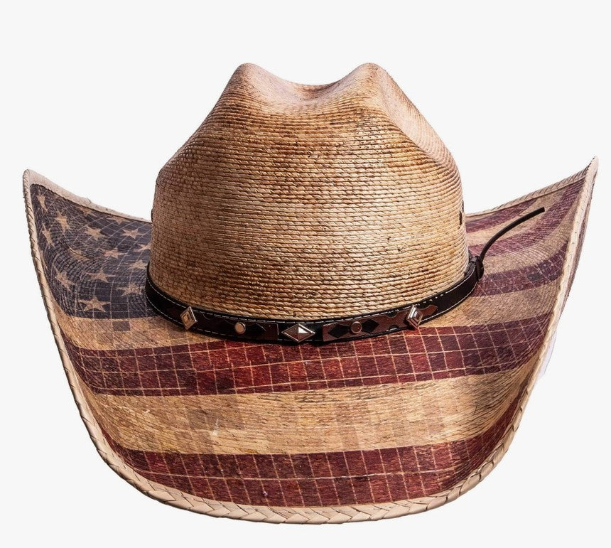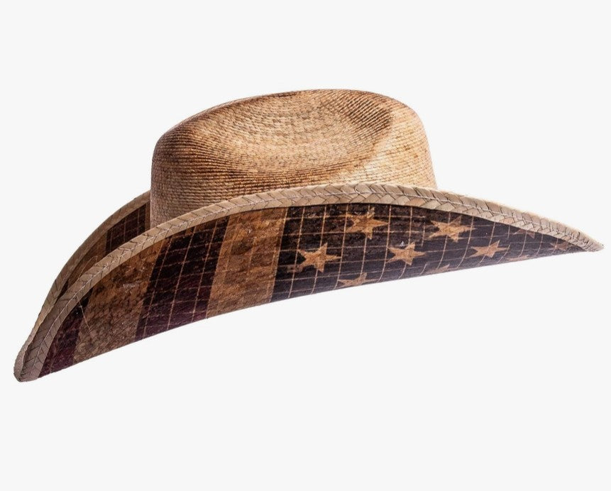 A true American classic, the Liberty embodies the liberties that come with being an American. Featuring a black and brown stitched leather hatband and American flag painted onto the brim, this hat will turn heads!