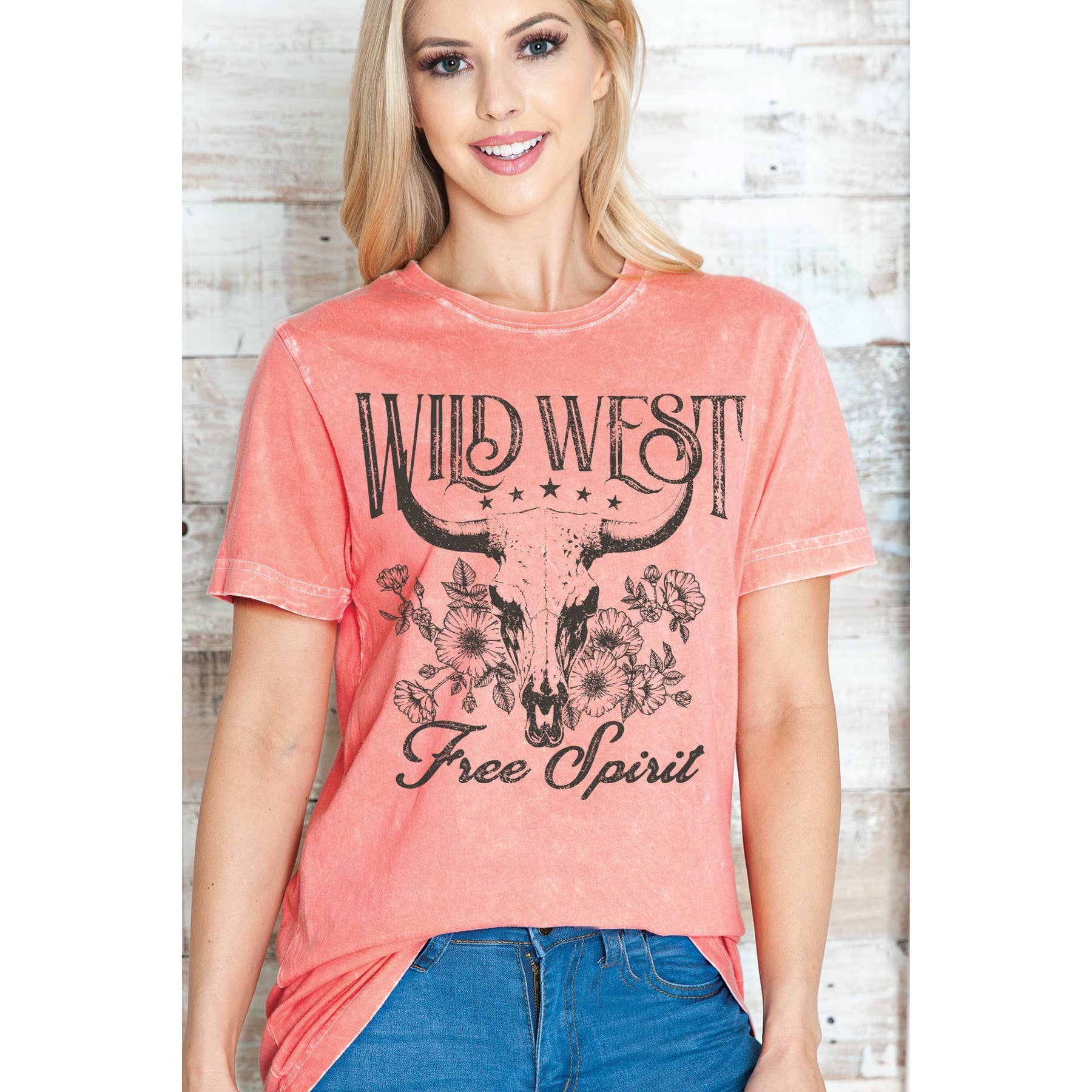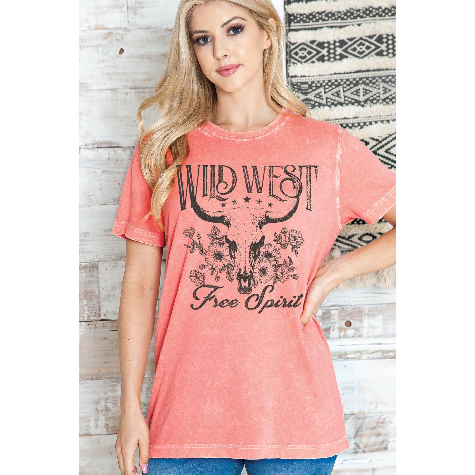 Amused By Blue Wild West Tee in Mineral Wash Coral MD6386