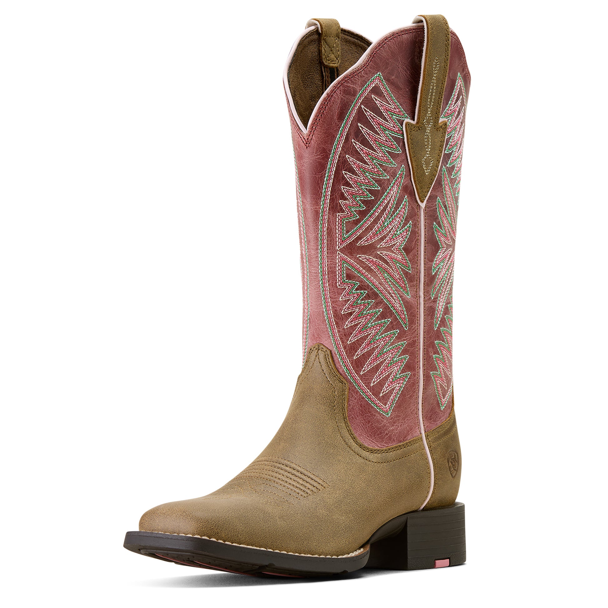Ariat Ladies 10074331 Round Up Ruidoso Western Boots in Brown Bomber/Distressed Pink