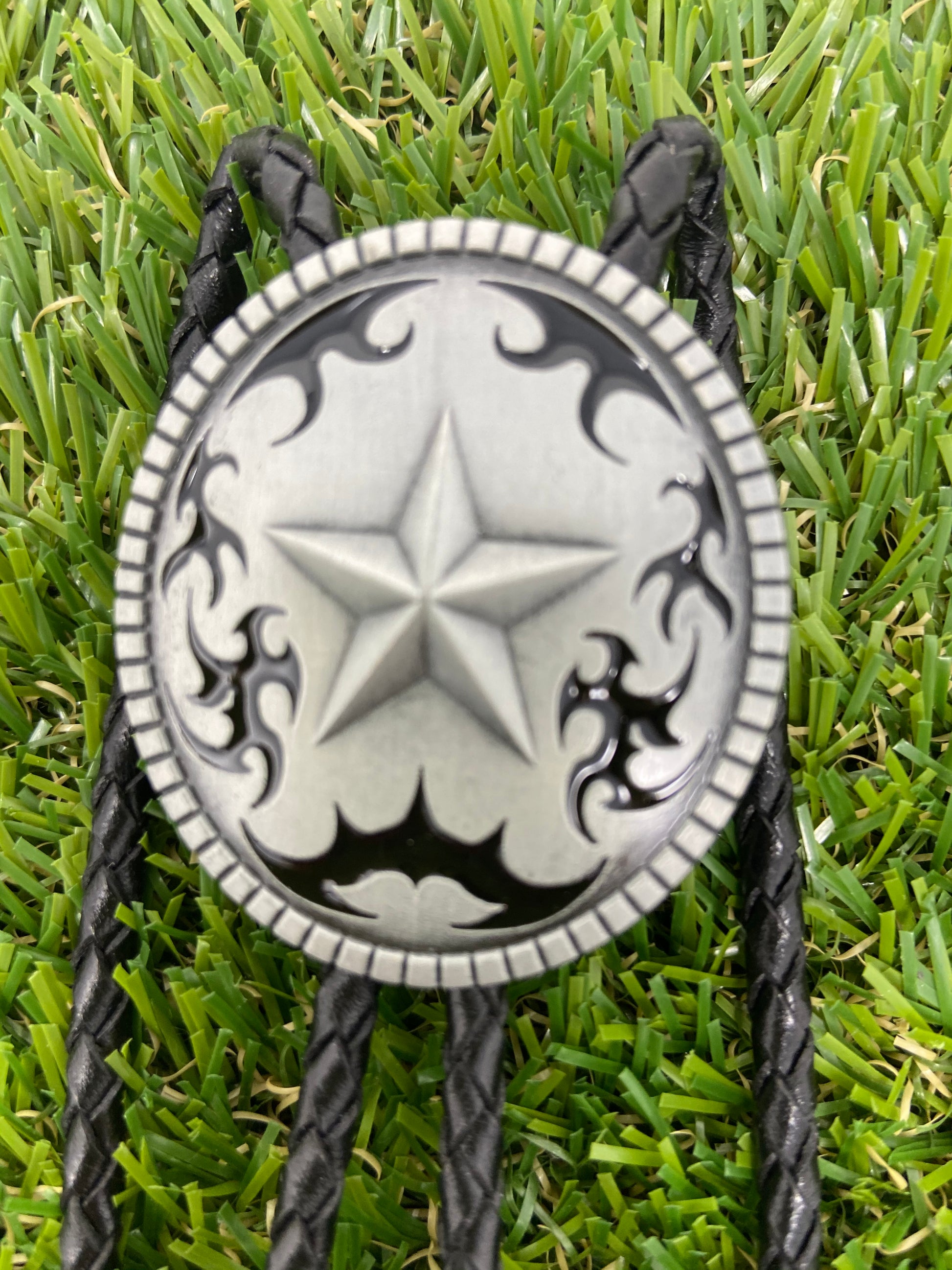 Jeansfriend New Vintage Original Western Oval Star Wedding Bolo Tie Leather Necklace