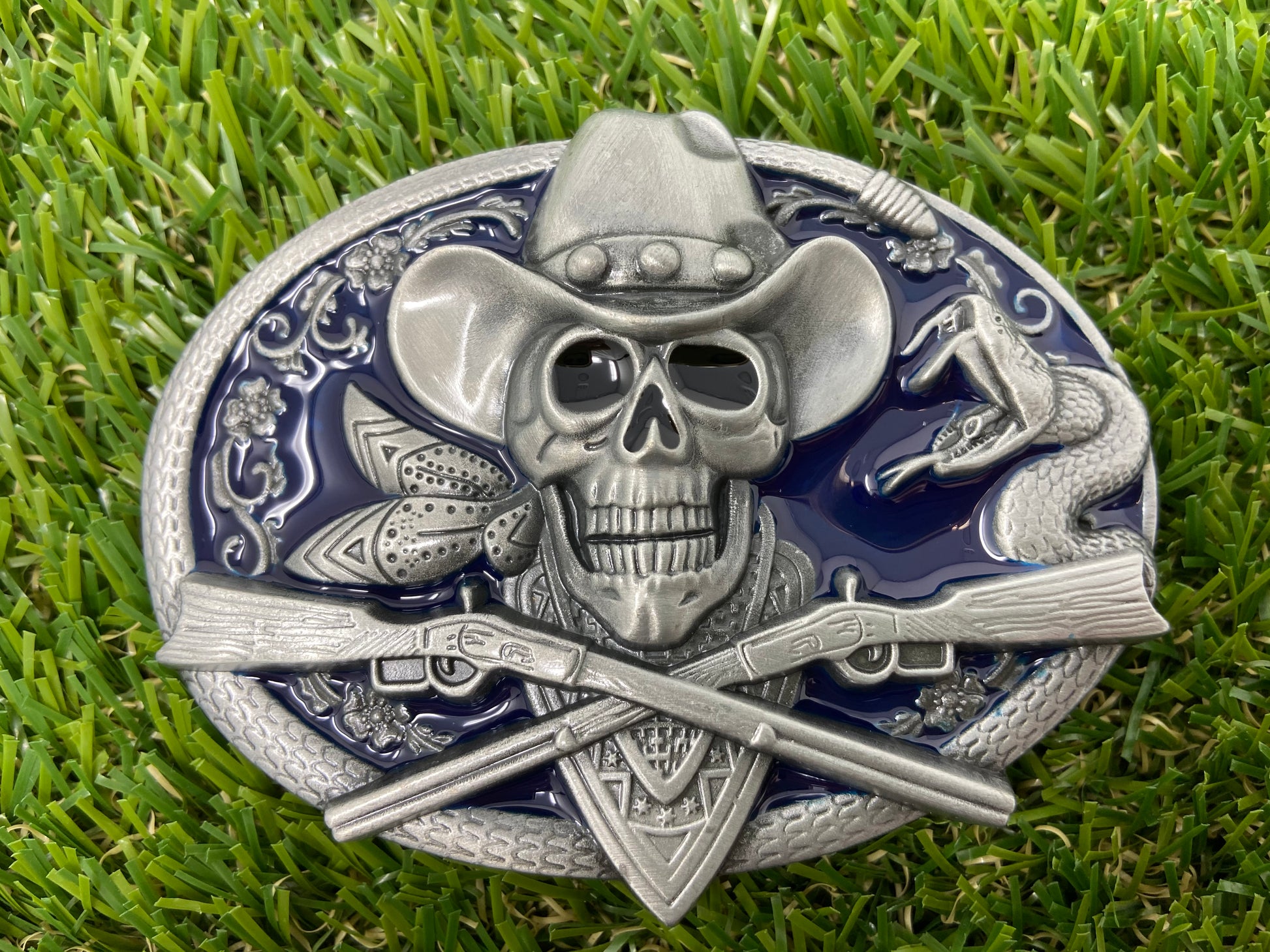 Western Rodeo Skull Cowboy Enamel Oval Vintage Belt Buckle