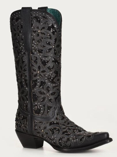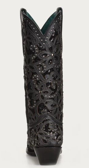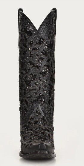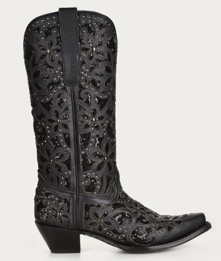 Corral A3752 Black Floral Glitter Cowboy Boots