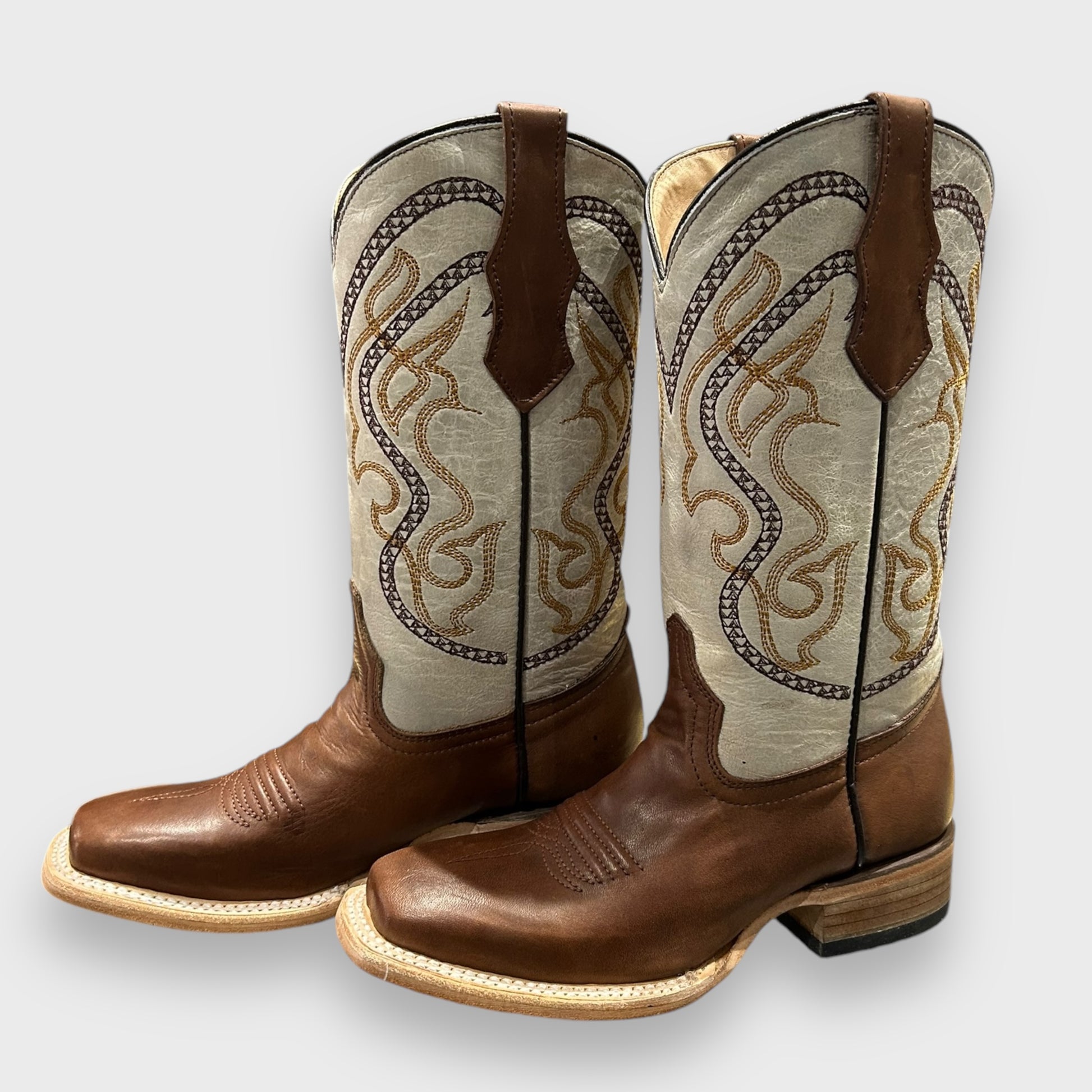 Corral Teens J7100 Handcrafted Brown/Beige Narrow Square Toe Cowboy Boots