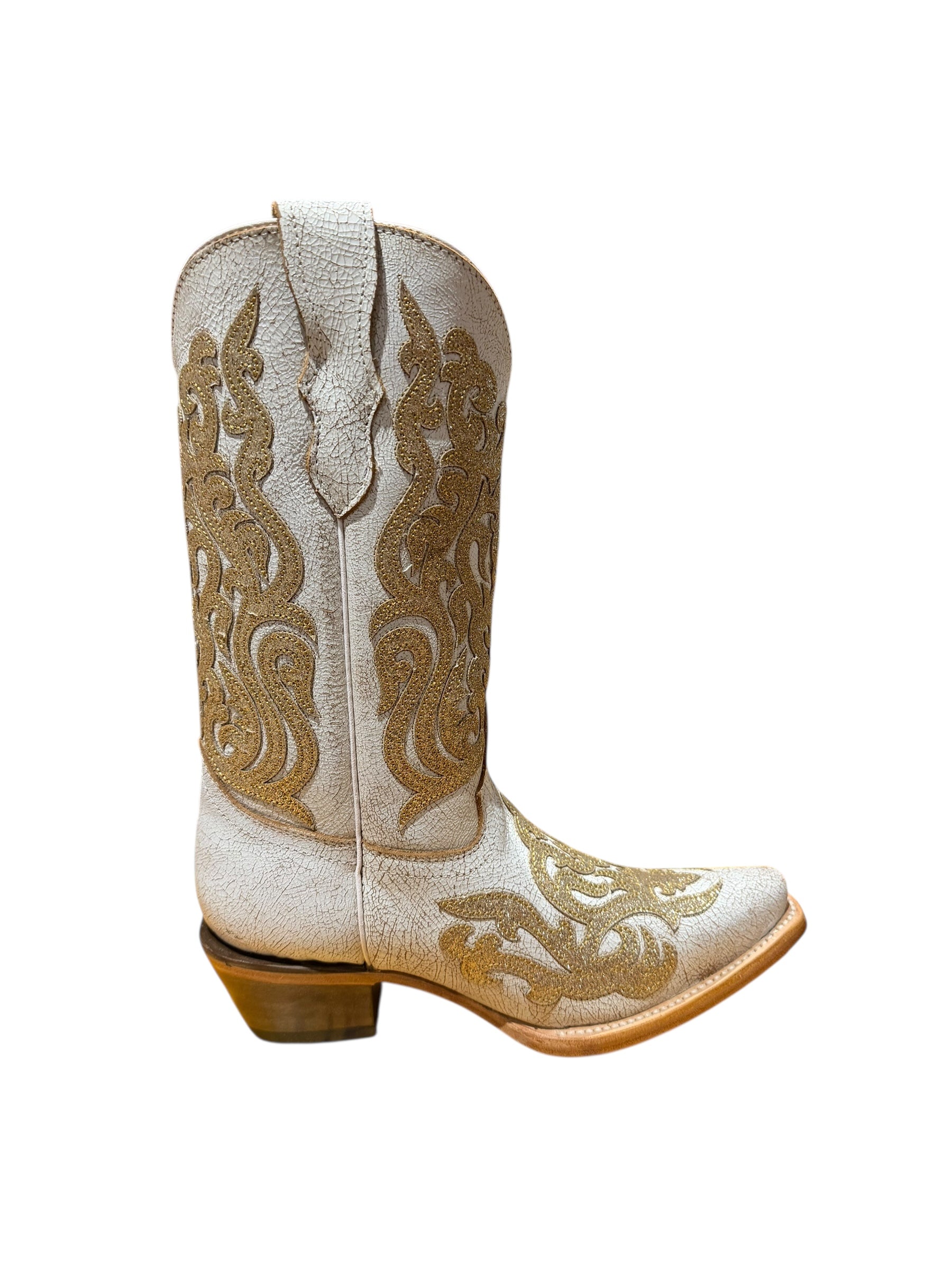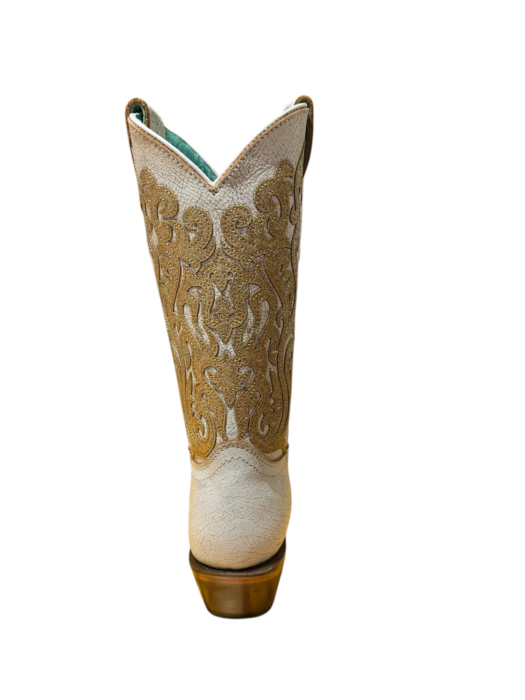 Corral Teens T0210 White/Gold Glitter inlay Cowboy Boots