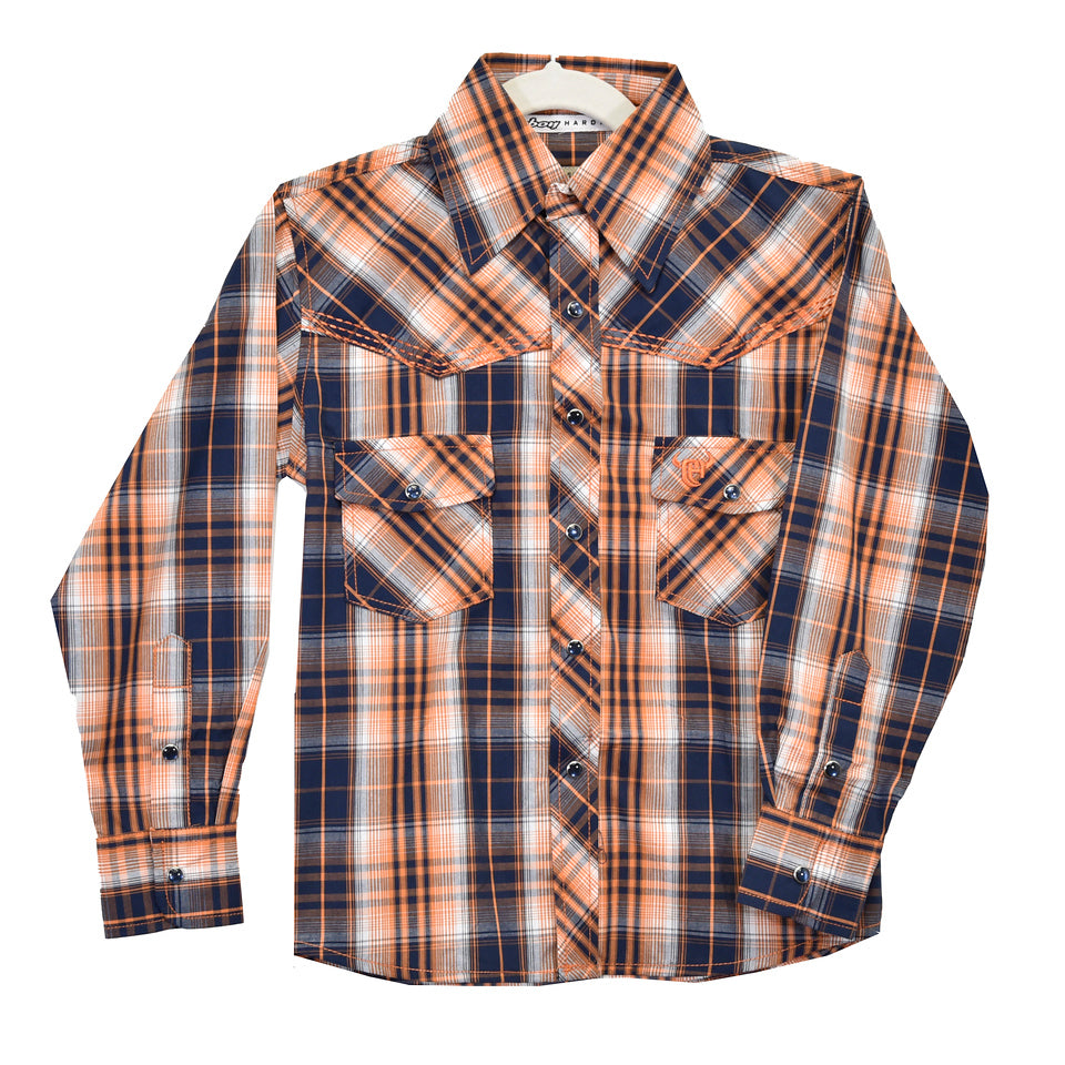 Cowboy Hardware Boys Hermosillo Orange & Navy Plaid Shirt 325517-265