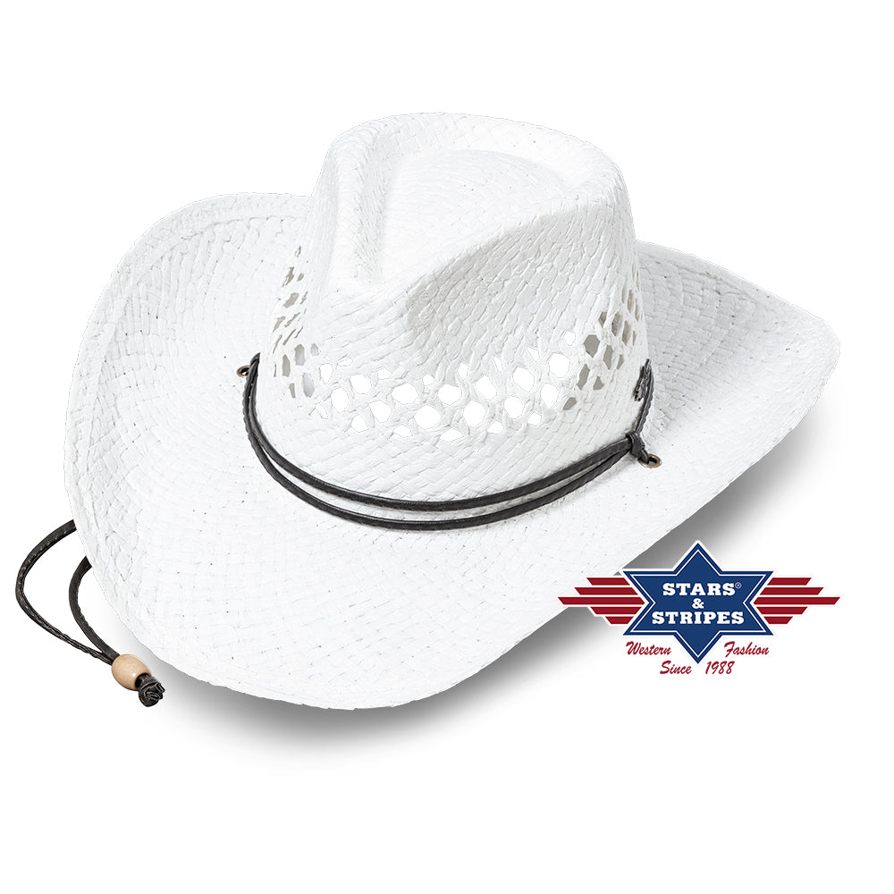 Western straw hat with fancy hole weave. With decorative hat band , adjustable tie and With size-adjustable inner band.