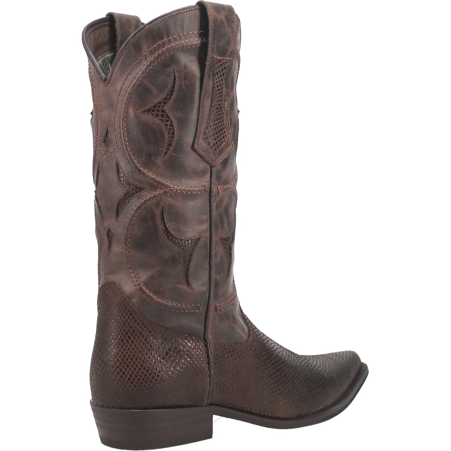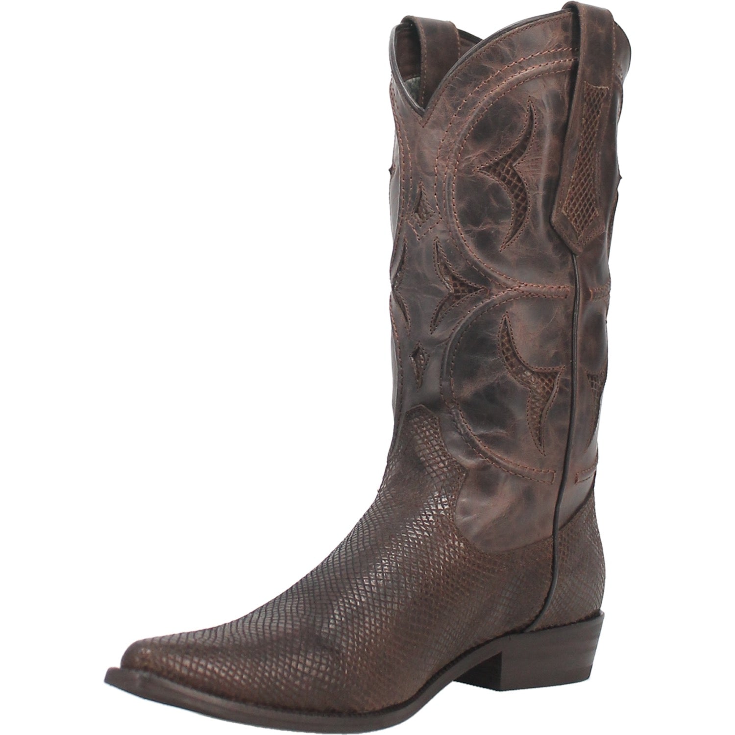 Exotic prints are timeless western influencers. #Dodge City has a lizard print leather foot. The upper has a unique stitched and corded pattern. Low walking heel and fashion snip toe complete the look.