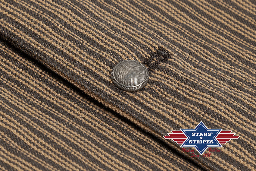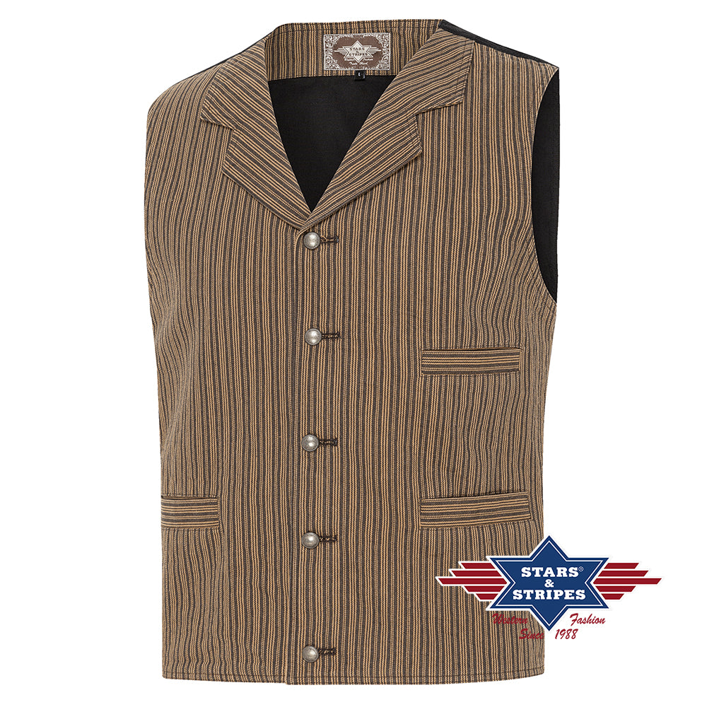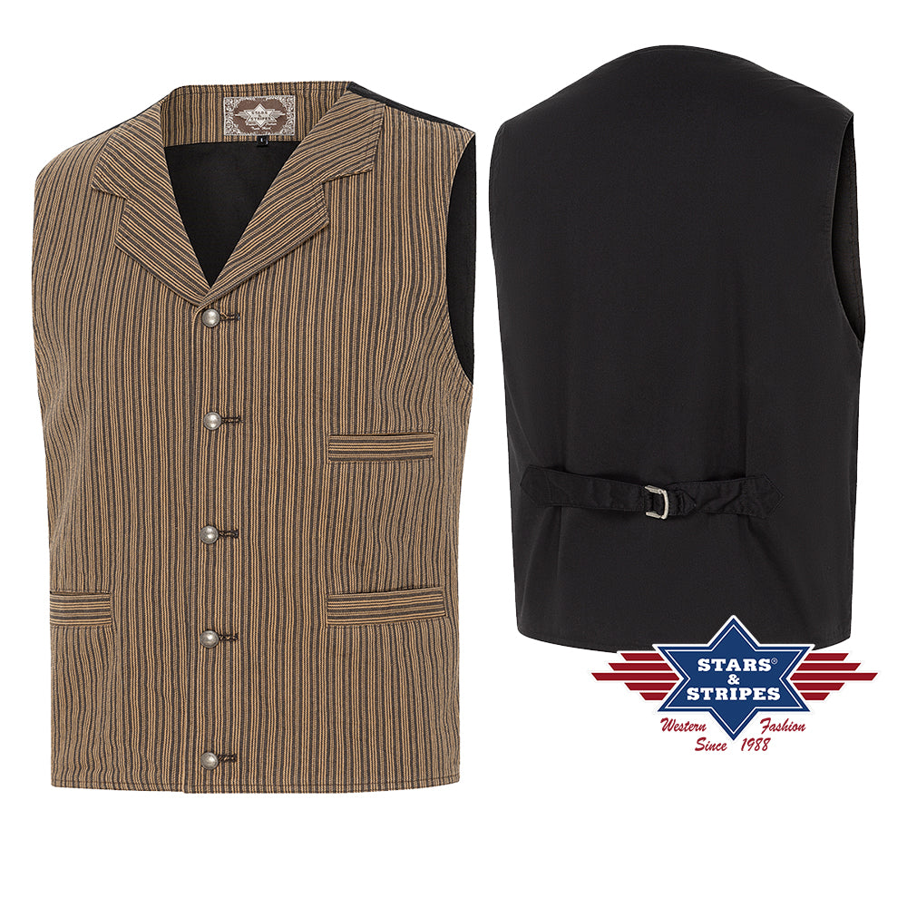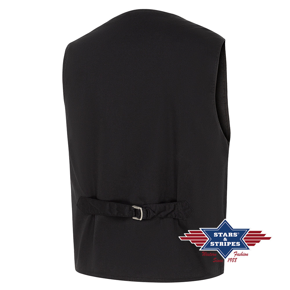 Authentic western old-style vest made of light cotton fabric with decorative metal buttons. At the black back it is adjustable by a crossbar.