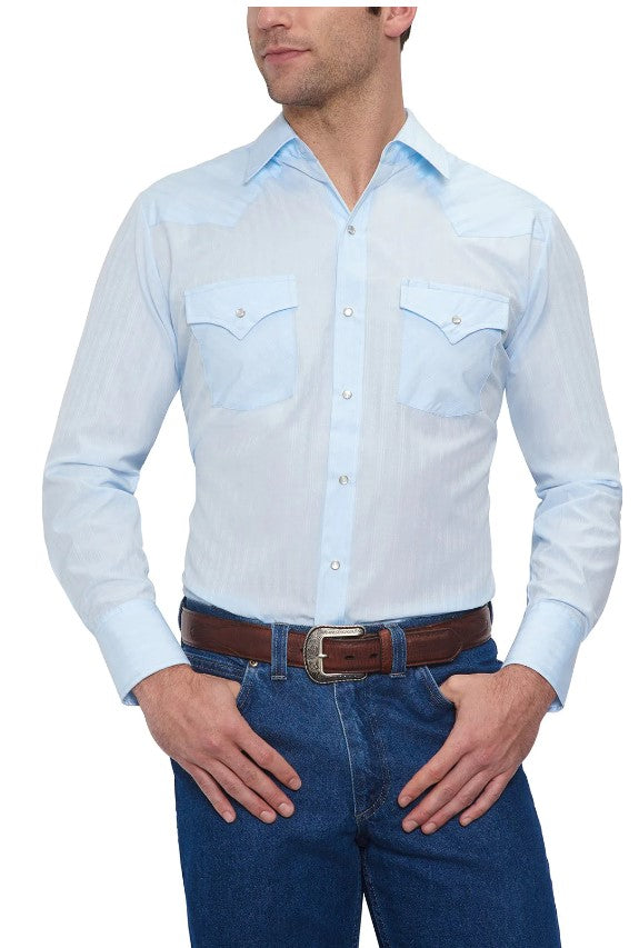 Ely & Walker Long Sleeve Solid Tone on Tone Light Blue Western Shirt 15201934-82