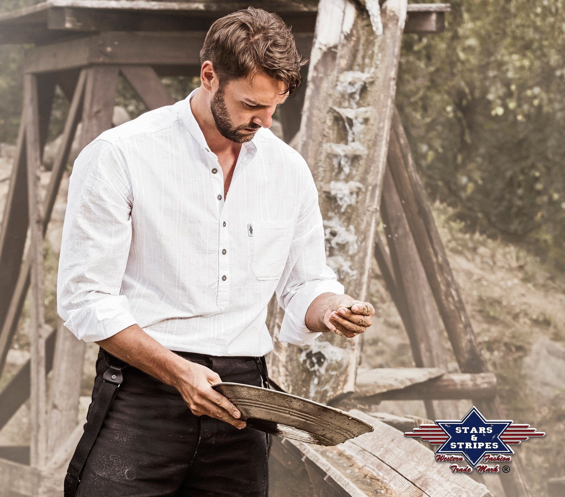 Loose fit jacquard shirt with stand-up collar, half button strip and metal buttons