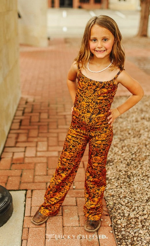 Girls Brown Tooled Spaghetti Strap Jumpsuit JP012-G-BRTL