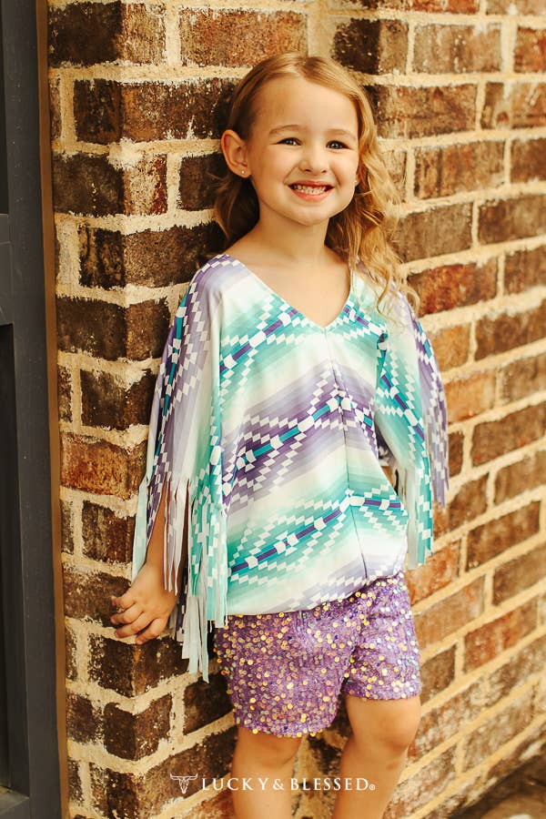 Lucky & Blessed SH200-G Girls Lavender Sequin High Waisted Shorts