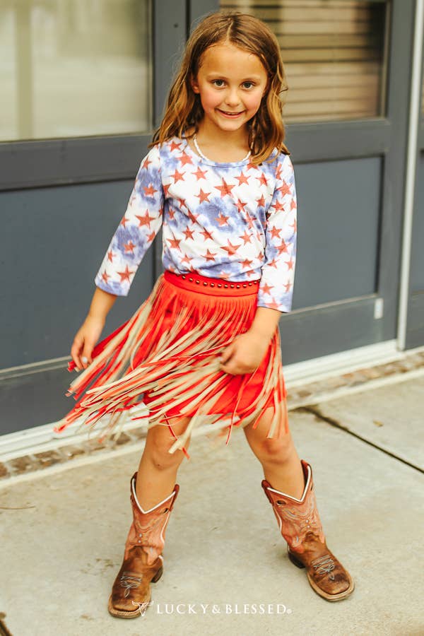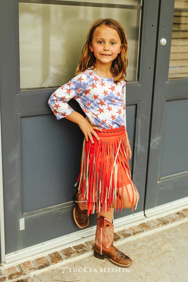 Girls Red Leather Studded Two Tier Fringe SK2111 in Red and Tan