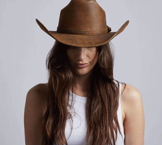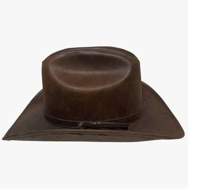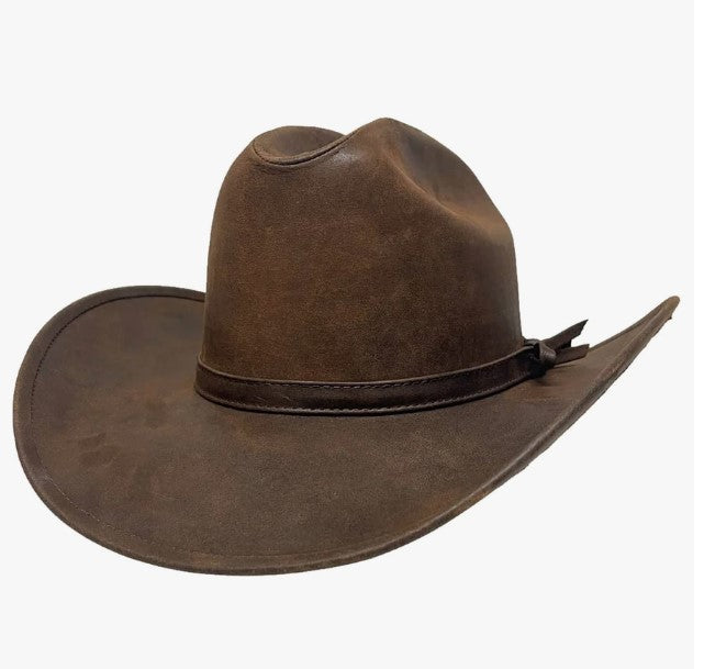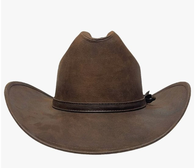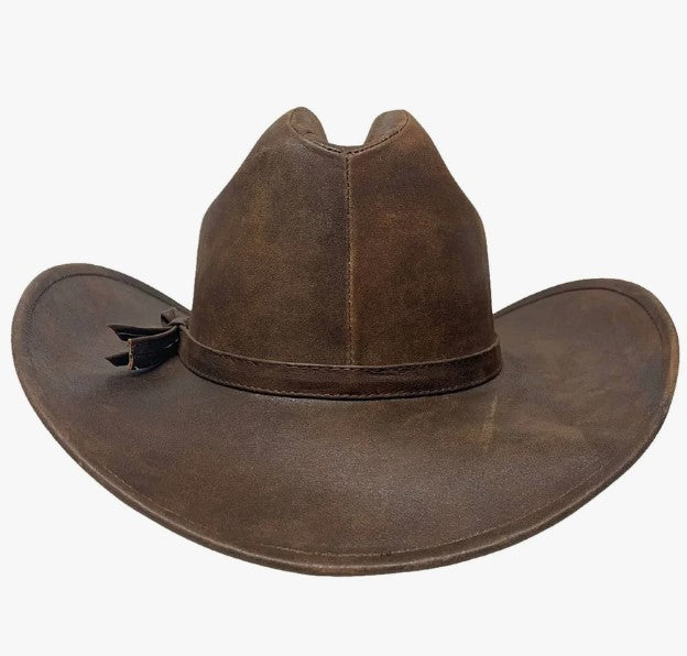 Introducing the Gorge Leather Cattleman Cowboy Hat. YEE HAW! It's another beautiful day, and boy! Do I got a hat for you. This fine piece of leather artisan work is made out of real! Premium! Genuine cowhide leather that you can feel...