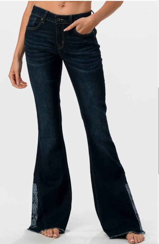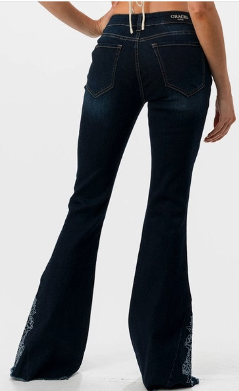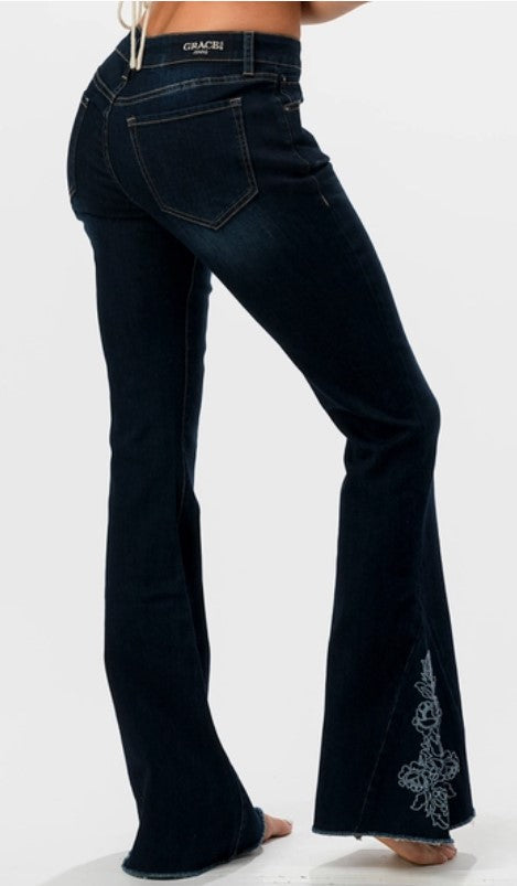 Grace Jeans Embroidered Rose Mid Rise Jeans EL-9560