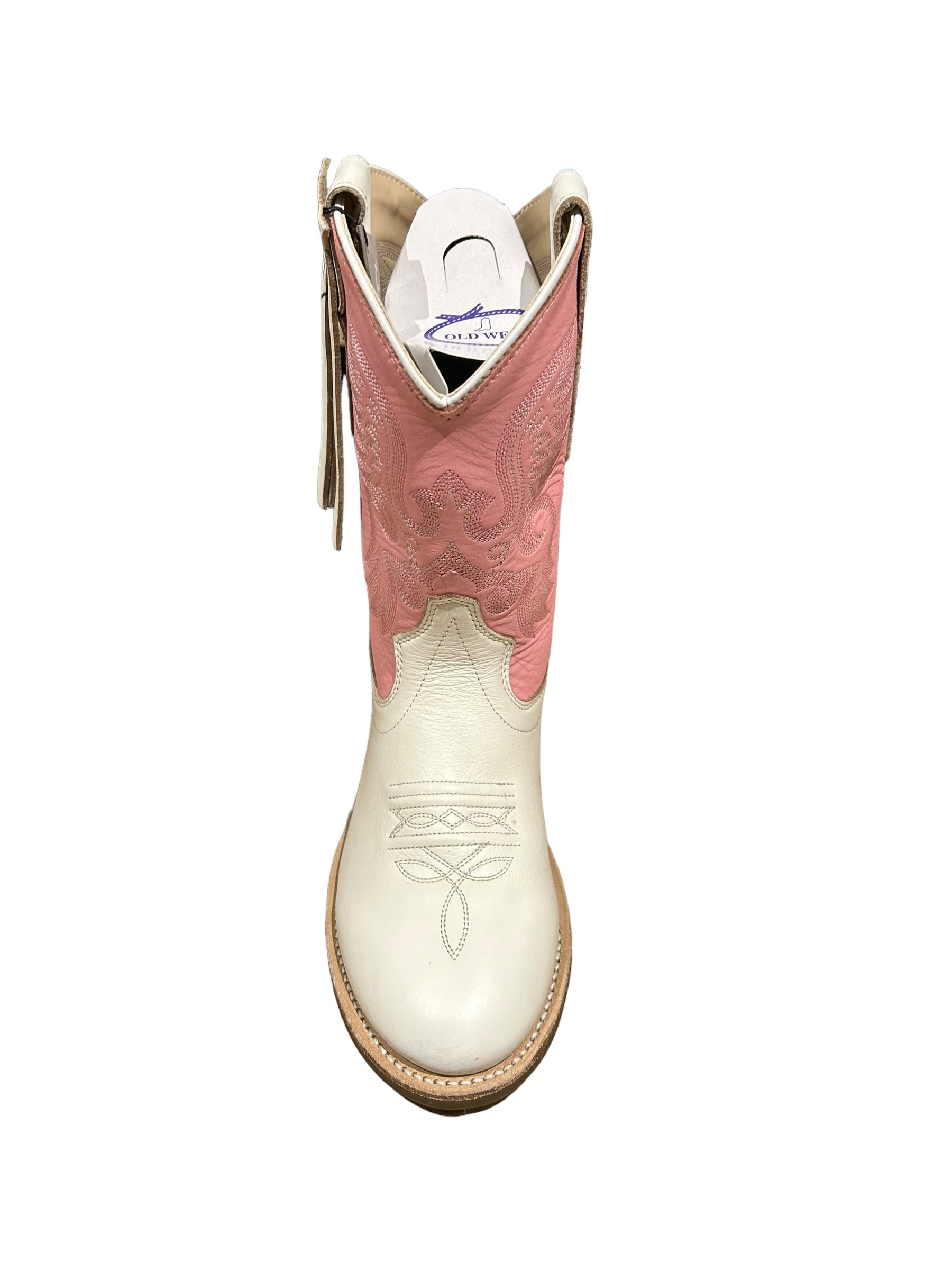 Jama Old West Children's Broad Round Toe in Pink and White BRC2016