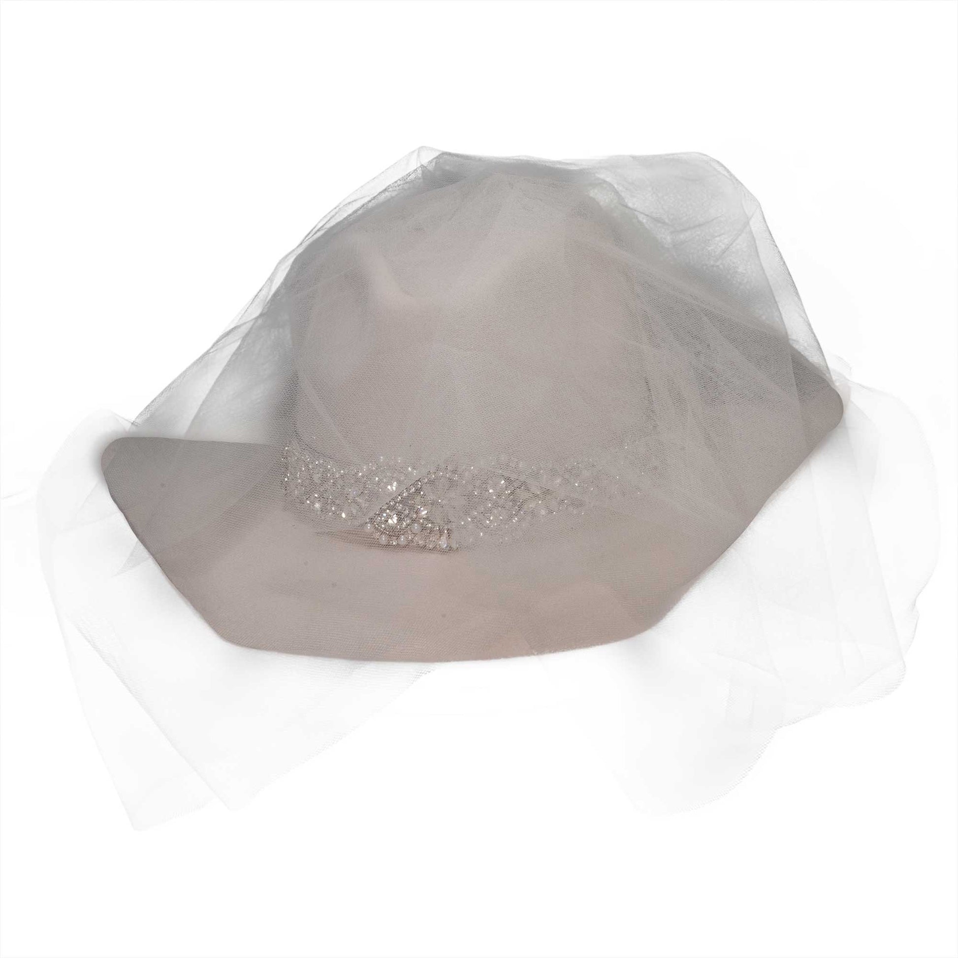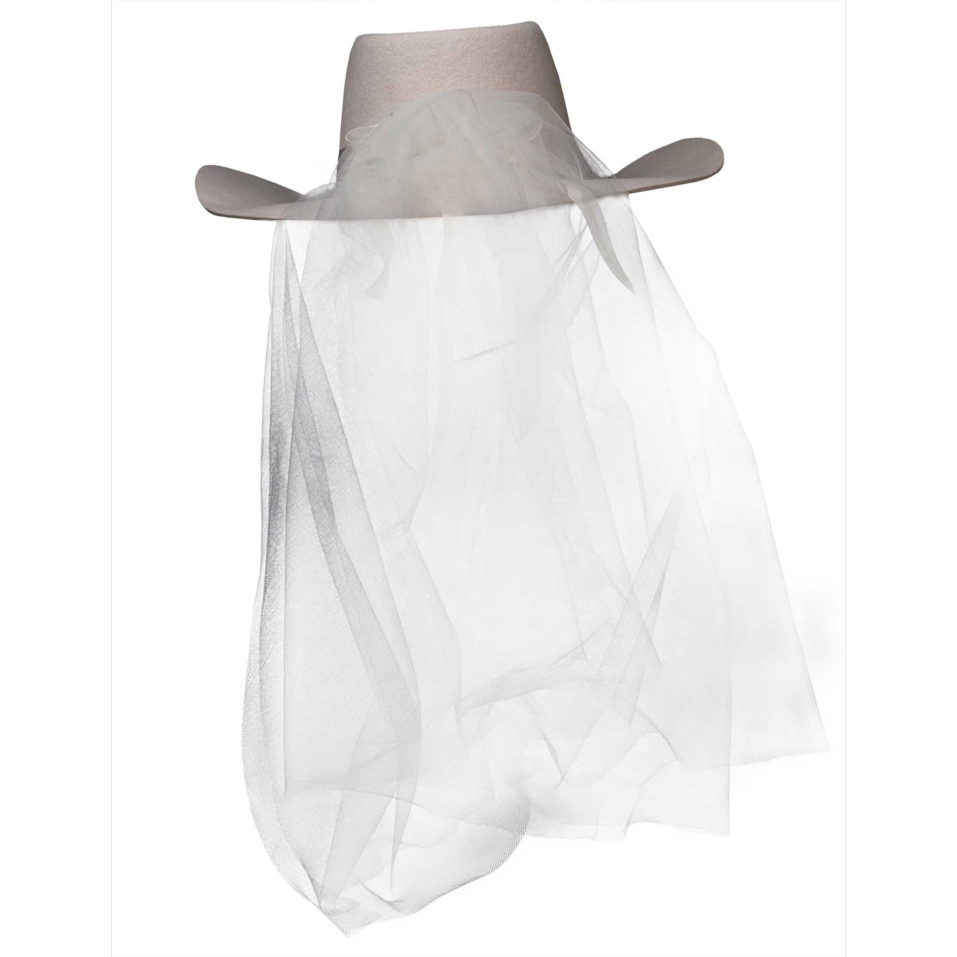 Do you want the perfect wedding cowboy hat? Well, look no further than the Veiled Juliet. This white cowboy hat comes with a cloth veil, cloth hatband with beautiful crystals, and shaped brim * Brim 4" Crown 4 1/2" * Rhinestone crystals Sizing Info Measuring begins by wrapping a soft measuring tape (also known as a tailor's tape or sewing tape) around your head. Continuing place the tape at your mid-forehead, and wrap it around your head above the ears measuring your head size. In summary, find your size on this chart.