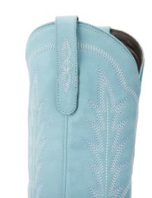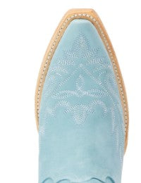 Heirloom quality boots with a core western influence. Meet Lexington in Powder Blue. The classic snip toe profile is embroidered to perfection with a twist on a traditional flame stitch.