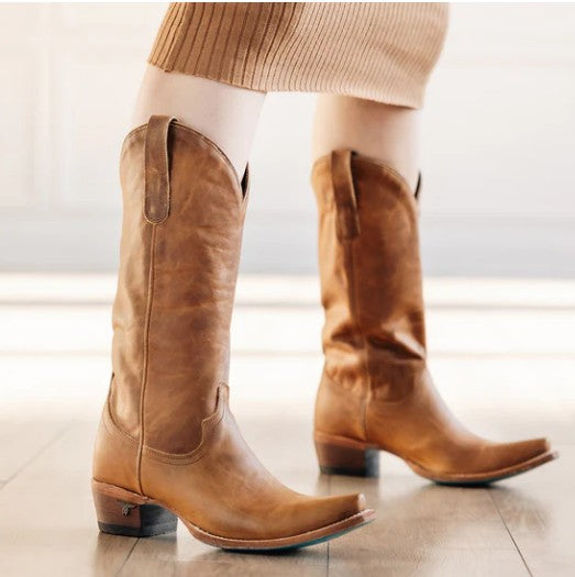It's giving western. Timeless snip toe and classic cowgirl silhouette. Meet Emma Jane in Desert Clay.