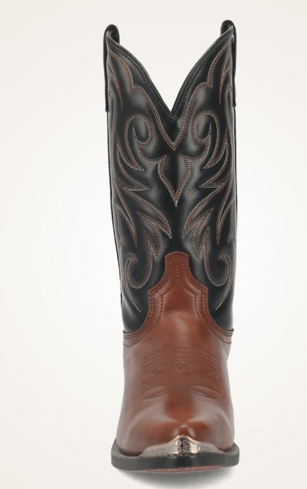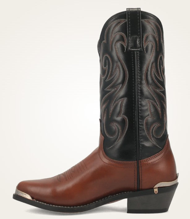 Step up your style with the Nashville boot. This two-toned looker is made with a peanut crunch leather foot. Complete with a black leather-like shaft that's detailed in traditional western stitching and a silver toe and heel rand. Also comes with a Comfort Cushion insole.