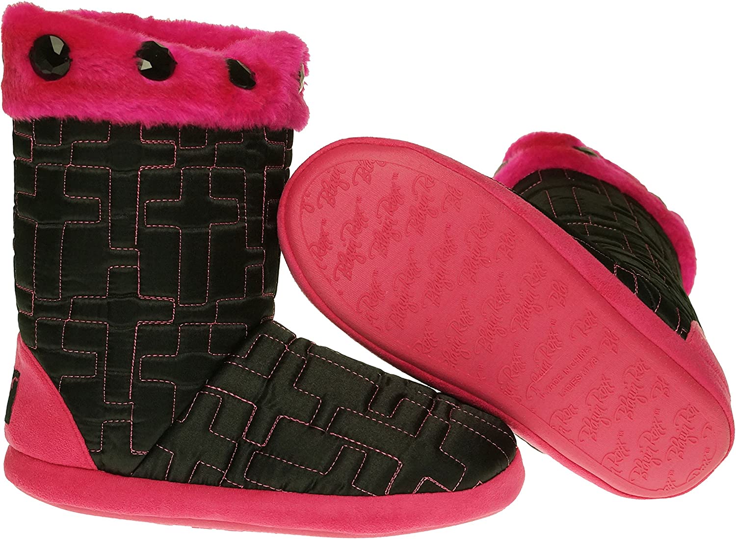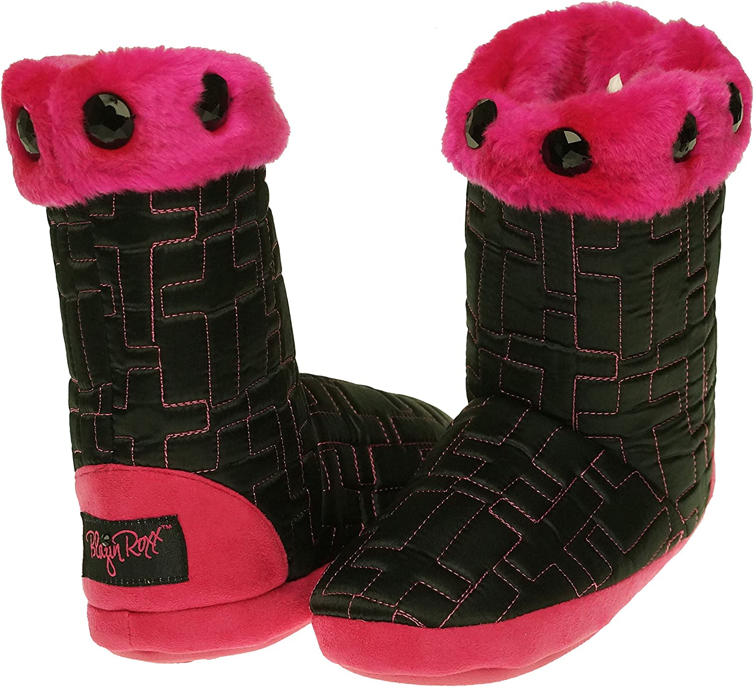 These comfy Blazin Roxx slippers by M & F Western Products® will keep you warm on the coldest of mornings. These are boot style with a quilted cross design and hot pink trim and stitching. These slippers are fun and cosy and are so comfortable you will want to wear them all of the time.