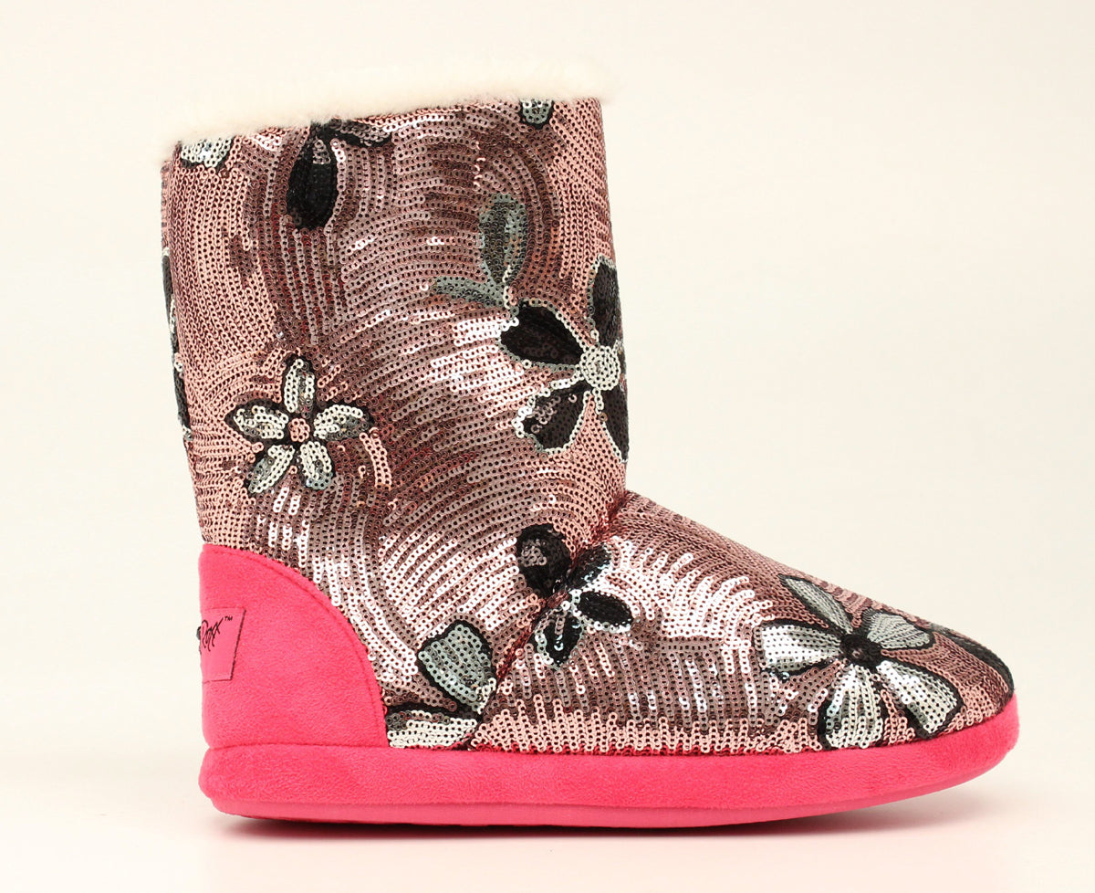 M&F 5717230 Diana Pink Flower Sequin Boot Slippers