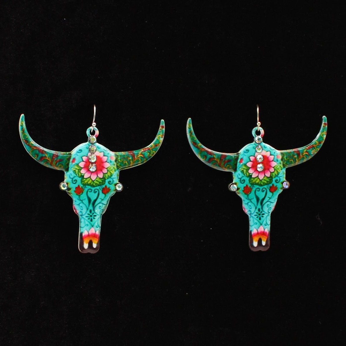 M&F Blazin Roxx Earrings Cow Skull Floral Earrings 30949