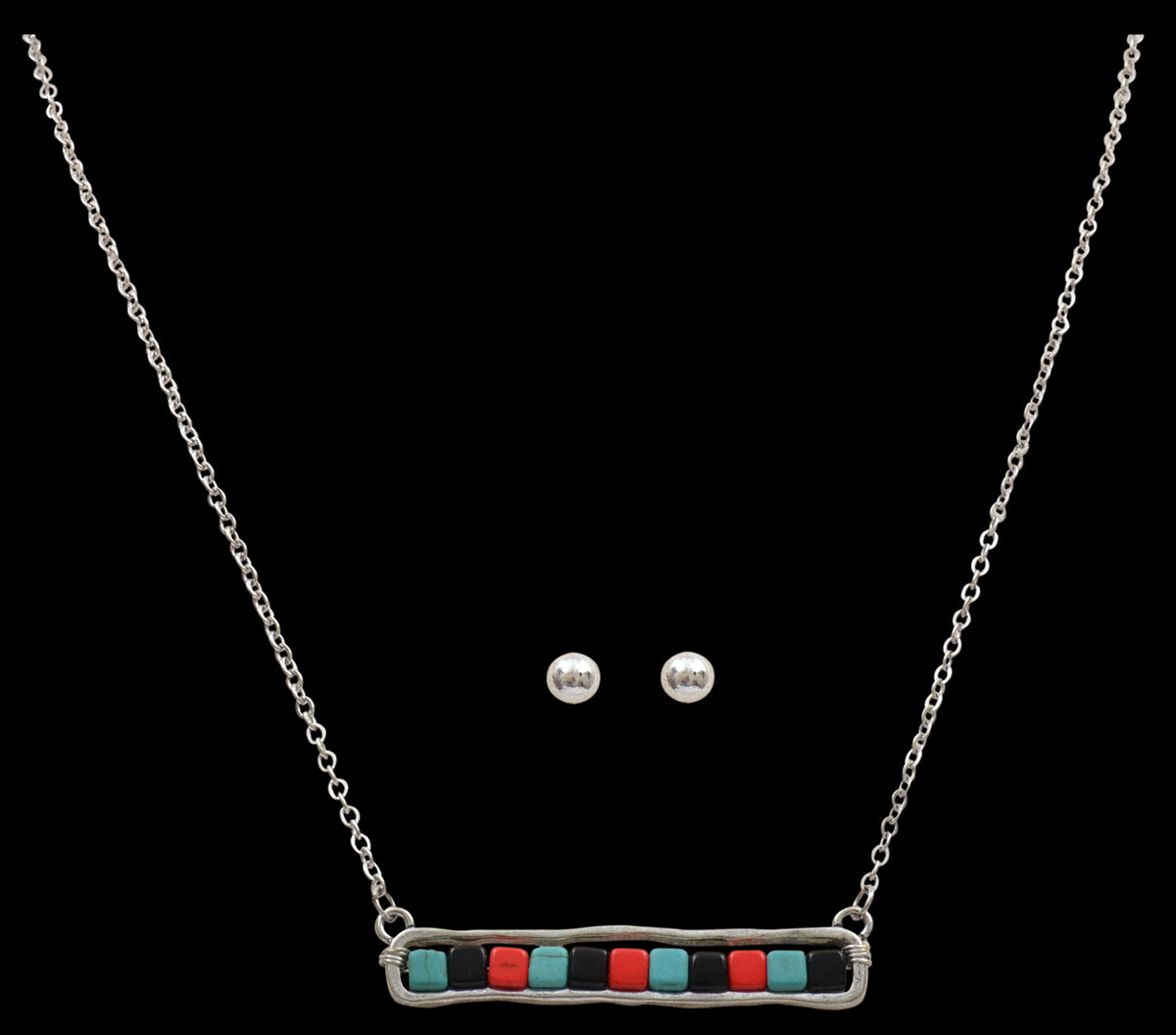 M&F DEN1005MT Antiqued Silver Earrings & Necklace Set