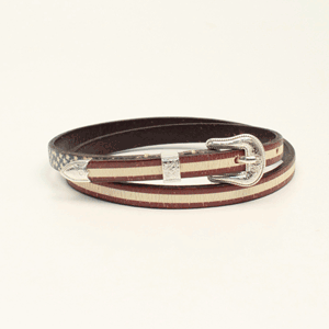 3D hatband by M&F Western Products. Features a distressed vintage USA flag design. Measures 27” long.