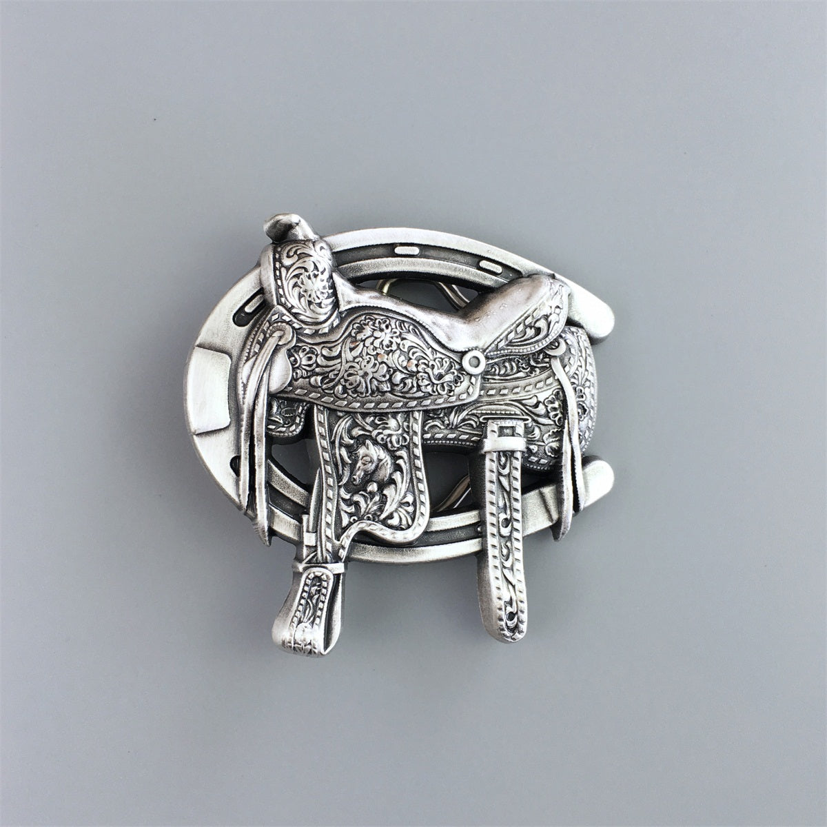 New Original Vintage Silver Plated Western Saddle Horse Shoe Belt Buckle Gurtelschnalle Boucle de ceinture BUCKLE-WT140SL