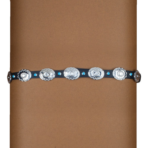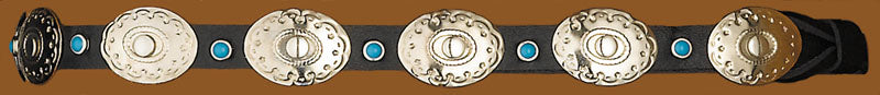 OC-288 Black Leather Hat Band with Silver Conchos with Turquoise Centres