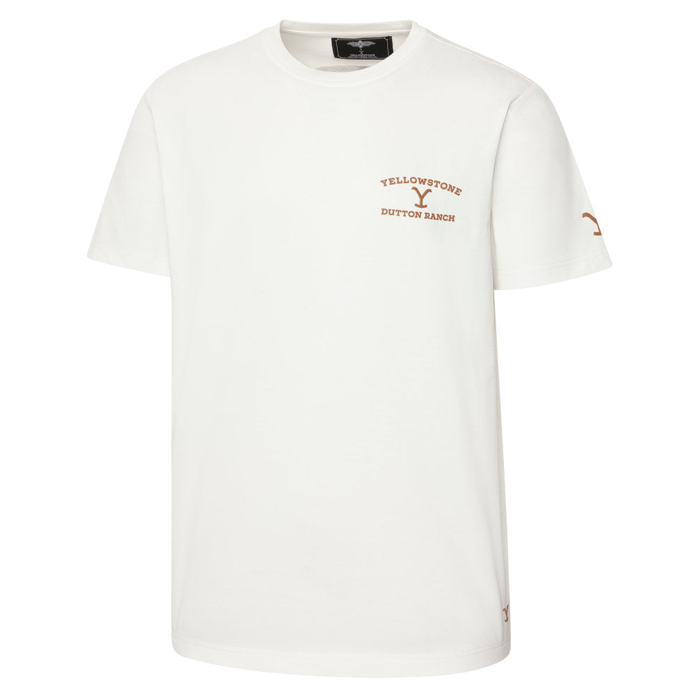 Unisex T-shirt with crew neck made from high-quality cotton. Refined with a subtle Yellowstone logo print on the chest and sleeve, and a bold premium back print. A stylish yet casual piece from the current Yellowstone collection ? easy to combine and a true must-have for any wardrobe. Not just for fans of the Dutton family, but for anyone who loves authentic Western style with a modern twist.