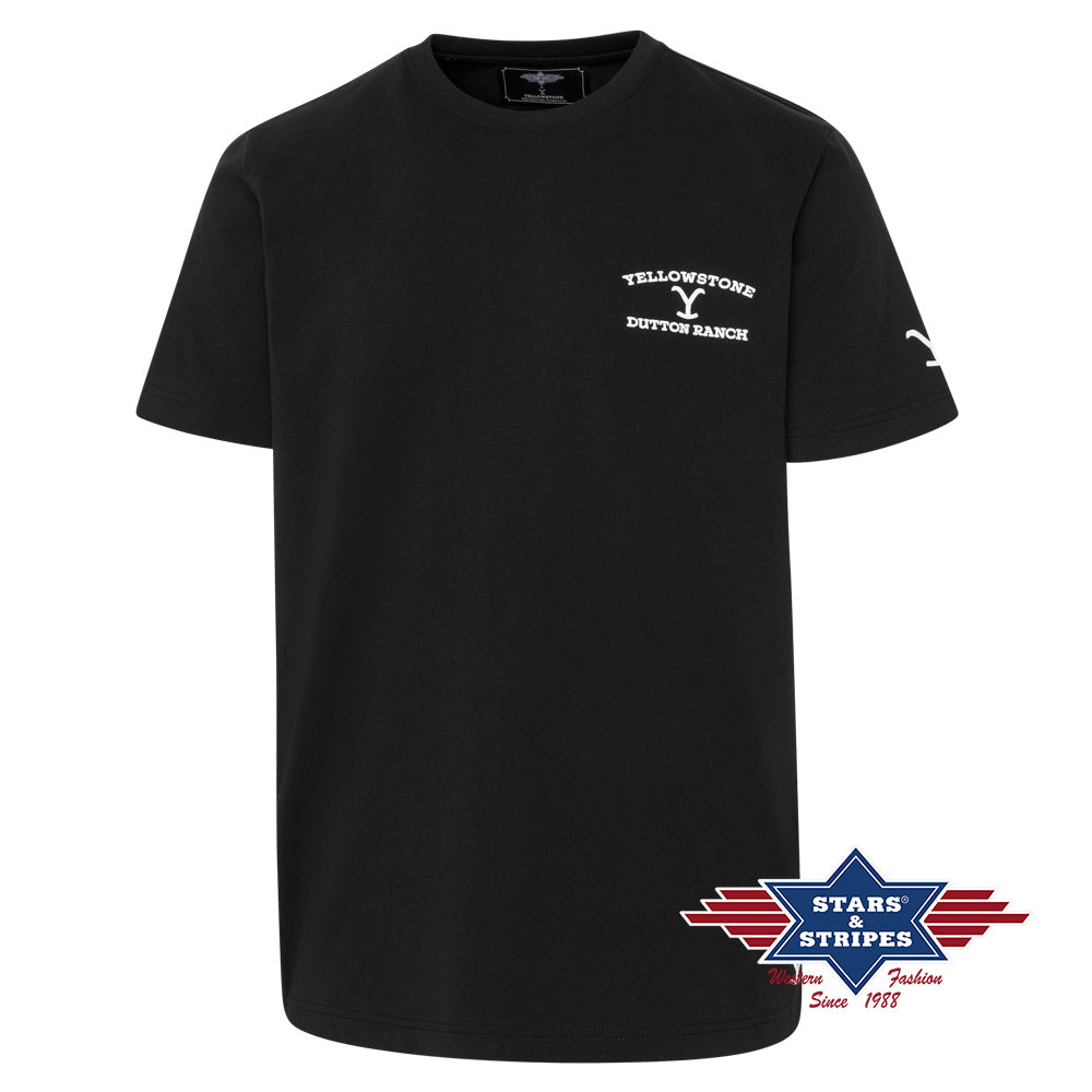 Unisex T-shirt with crew neck made from high-quality cotton. Refined with a subtle Yellowstone logo print on the chest and sleeve, and a bold premium back print. A stylish yet casual piece from the current Yellowstone collection ? easy to combine and a true must-have for any wardrobe. Not just for fans of the Dutton family, but for anyone who loves authentic Western style with a modern twist.