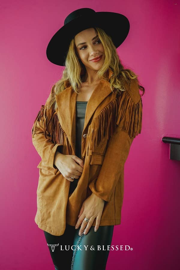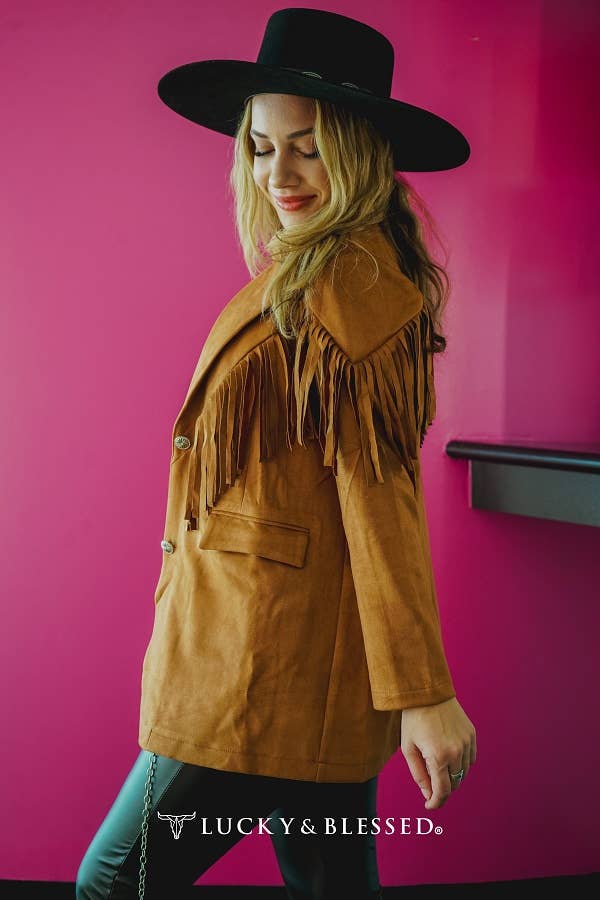 Plus Size Camel Concho Button Down Fringe Lapel Blazer JO036-CML-X