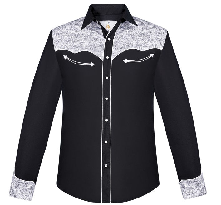 Rangers- Mens with contrasting yolks with western pattern, Western Shirt, Round Pearl Buttons