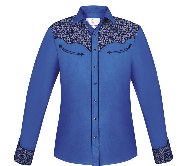 Rangers- Mens with contrasting yolks with western pattern, Western Shirt, Round Pearl Buttons