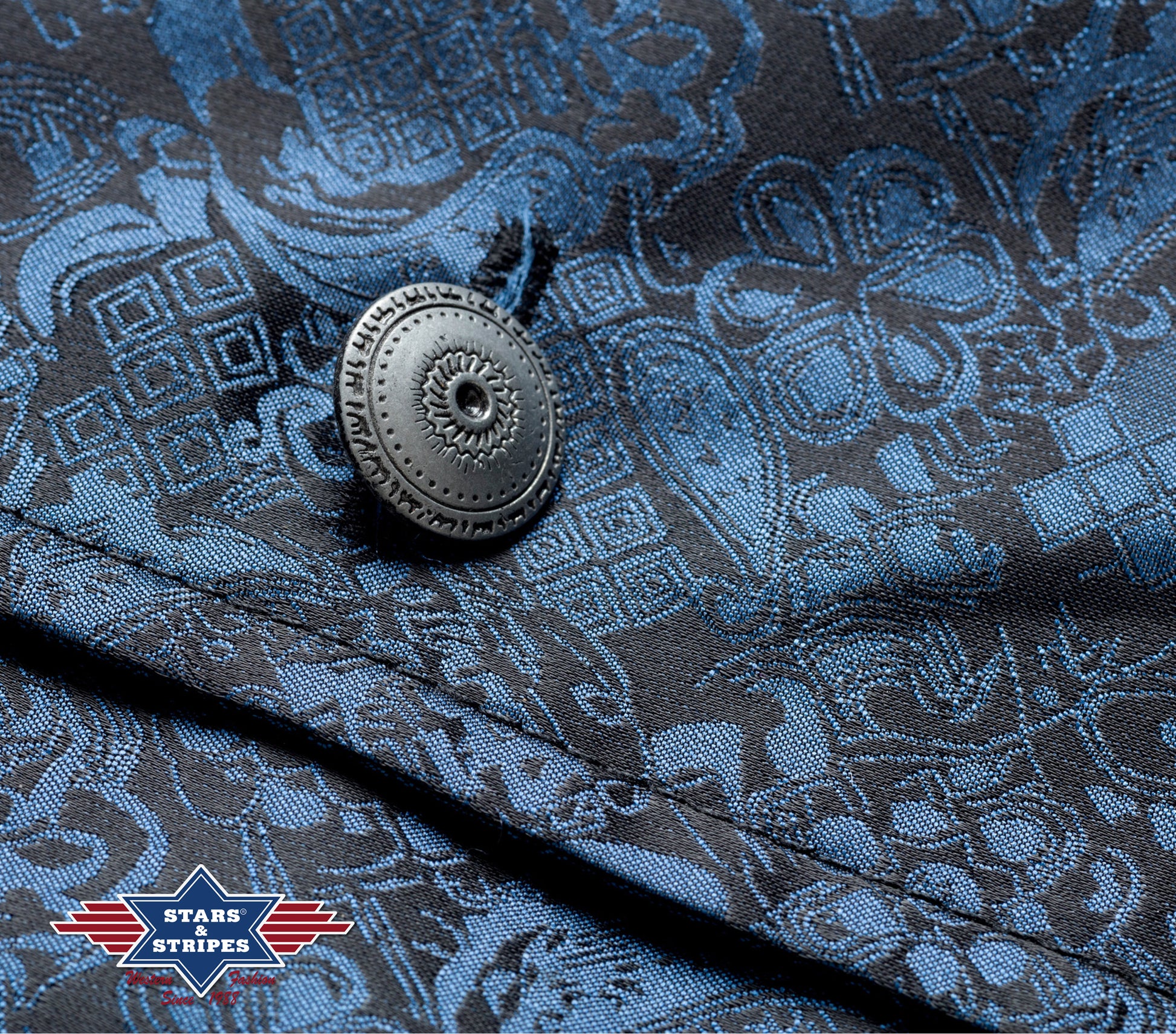 Jacquard waistcoat with two side pockets and decorative metal buttons