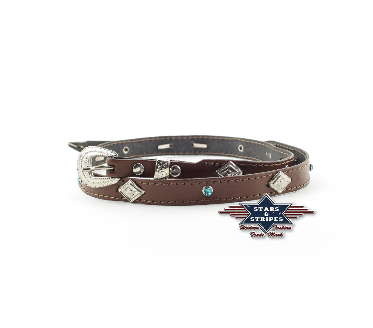 Western leather hatband with small buckle.