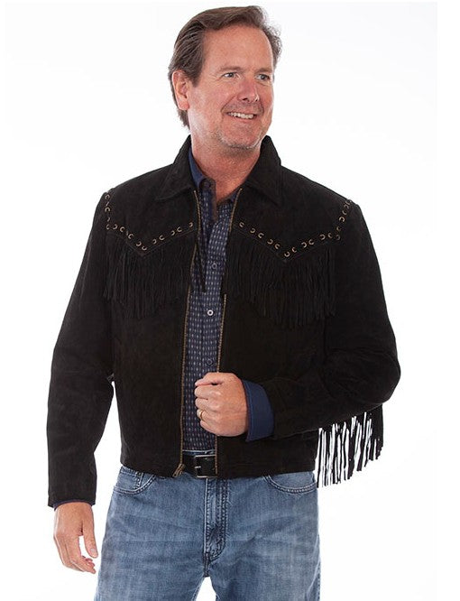 Scully 221 Boar Suede Mens Texan Fringe Jacket in Black