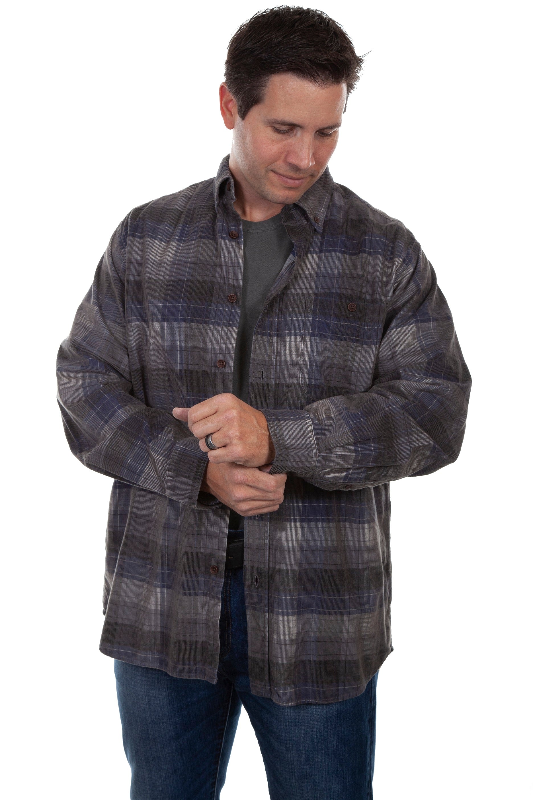 Yarn dyed corduroy plaid shirt. This 100% cotton yarn dyed plaid shirt features a hip casual plaid pattern in several colours. It has a button front, left chest pocket with button closure and point collar. Pair this with our colourful assortment of rib knit cotton t-shirts. Machine wash cold with like colours, do not bleach. Tumble dry low, remove promptly