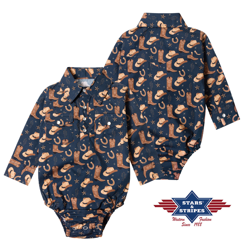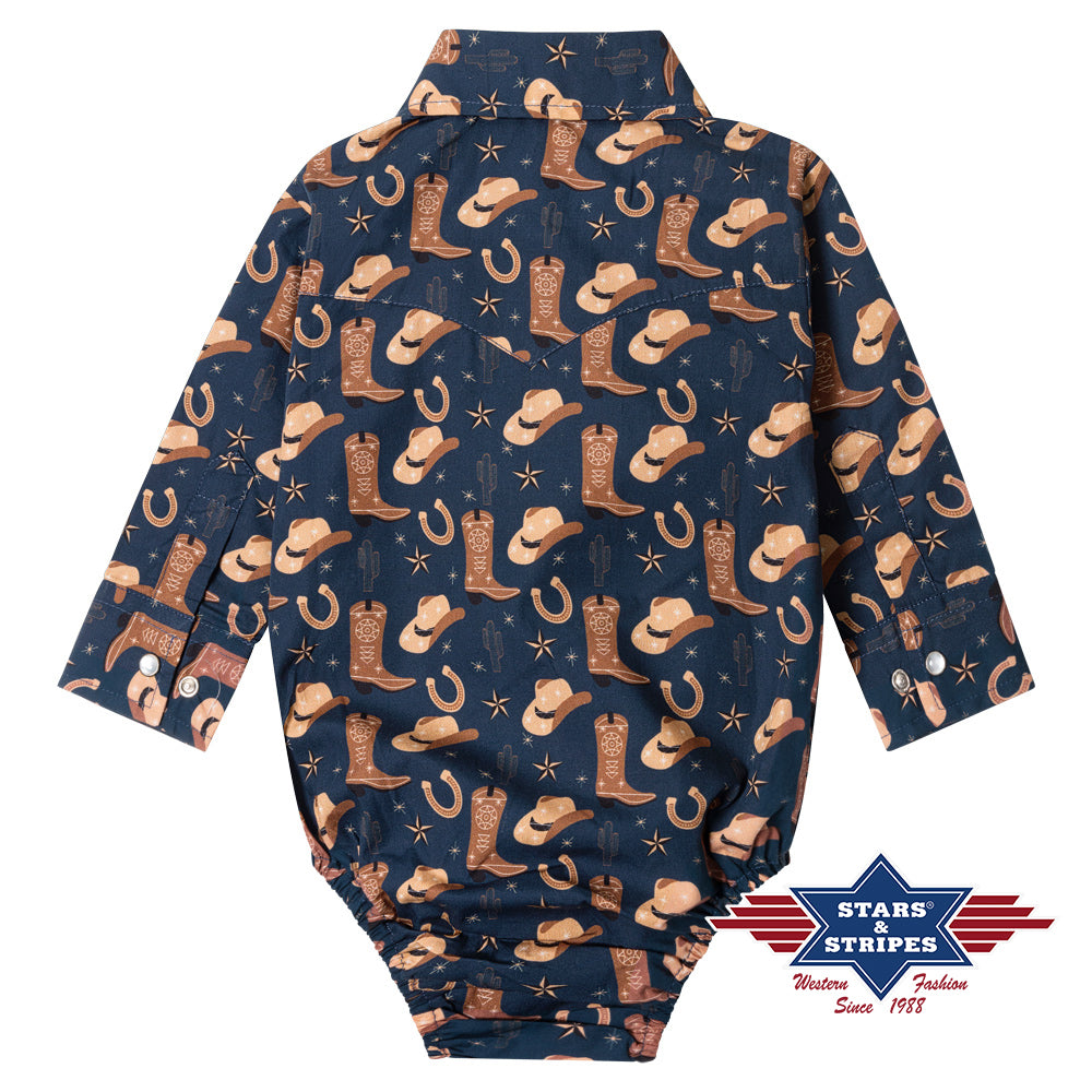 An explosion of cowboy boots and hats on a traditional Snap Western Shirt with stitching to define the yoke. Fabric Content: 100% Cotton
