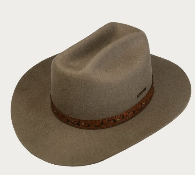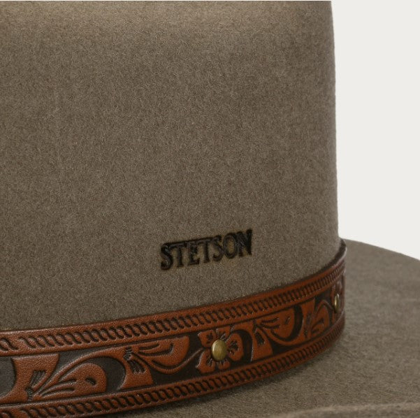 Wool forms the foundation of Stetson´s Western hat, a striking design with a skillfully dented crown and a sweeping brim. The reinforced warm, smooth felt ensures the hat retains its shape, while the solid-colour look is completed with rustic embossed leather trim and branded detailing. The addition of a COOLMAX® sweatband for breathable, moisture-wicking, and comfortable wear makes it a characterful addition to any outfit.