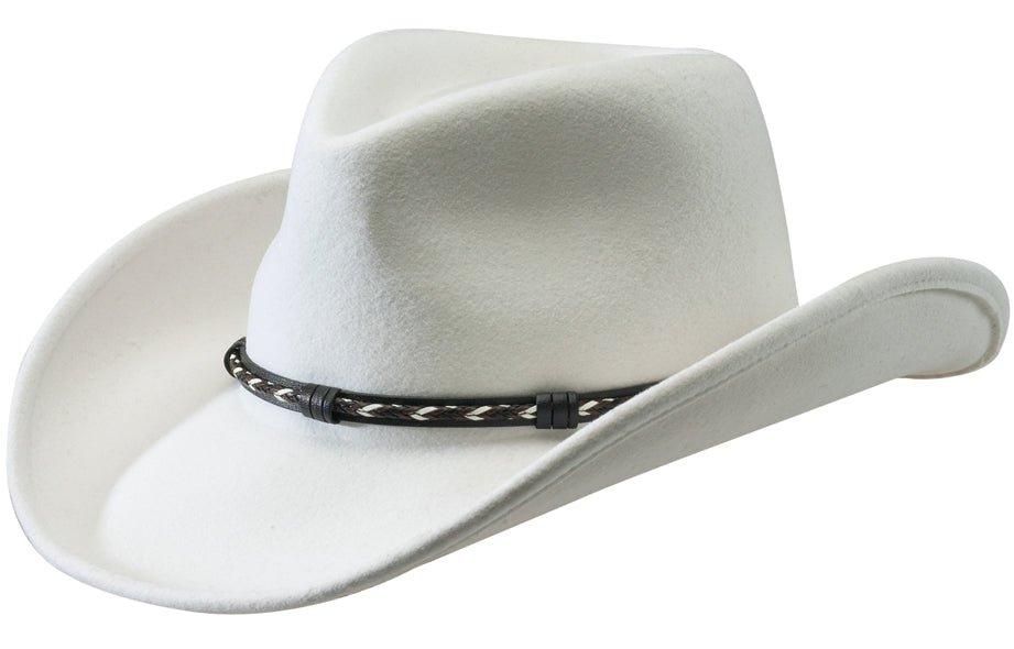 Shapeable Western hat with leather trim and stylish Stetson application. This hat reaches new hights in American hat making by the exclusive Stetson VitaFelt process. It's light - it's soft - it's flexible - it has a luxurious feel. No hat-maker ever turned out to be a better lightweight felt. Made of 100% water repellent pure wool this VitaFelt is handmade by American craftsmen in USA. You roll it and you shape it your way. It will be your one of a kind hat.