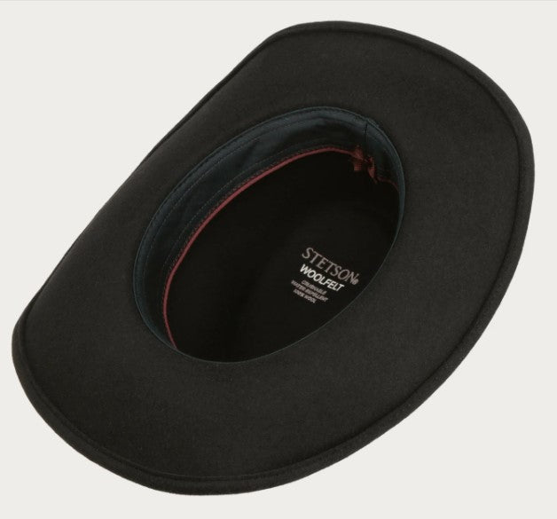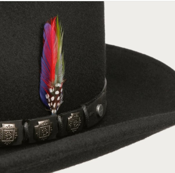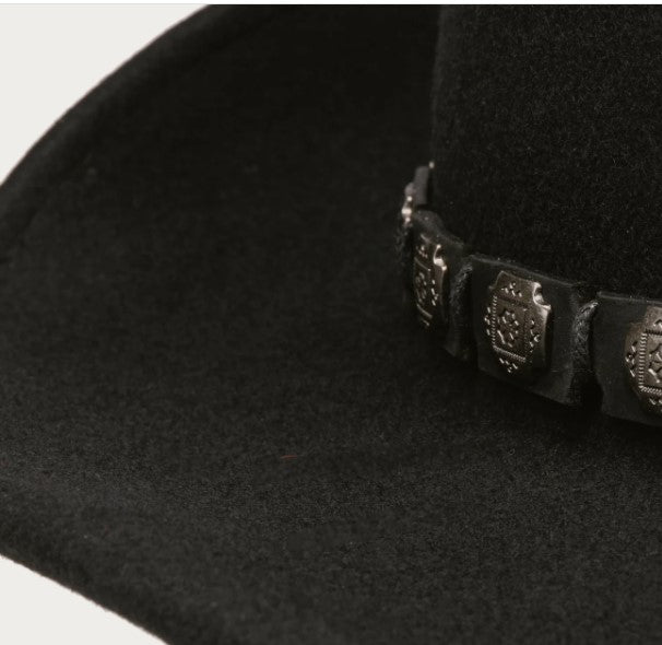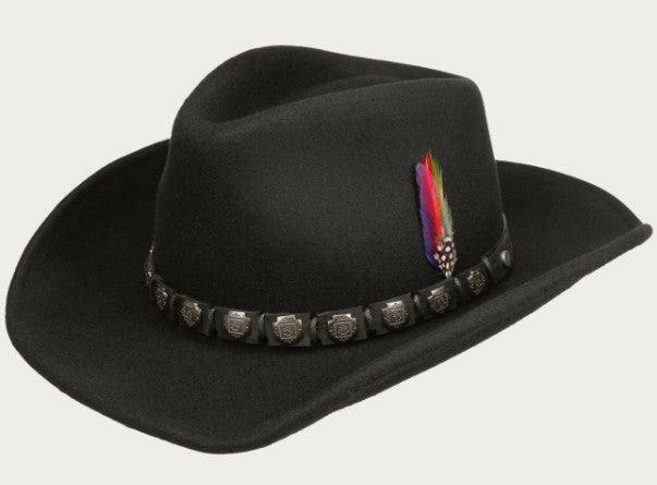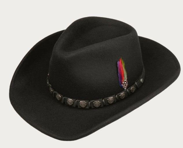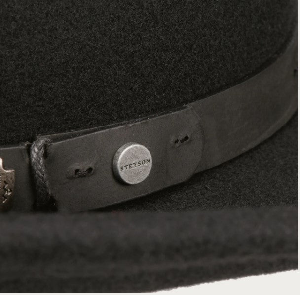 The extravagantly cut trim, adorned with metallic cross-shaped appliques, highlights the fashionable and rustic accents of this Western hat from Stetson USA. The high-quality ASAHI GUARD wool allows your hat to preserve its new appearance for longer, protecting it from water, oil, dust, etc.
