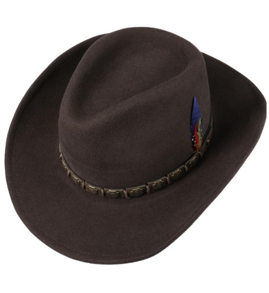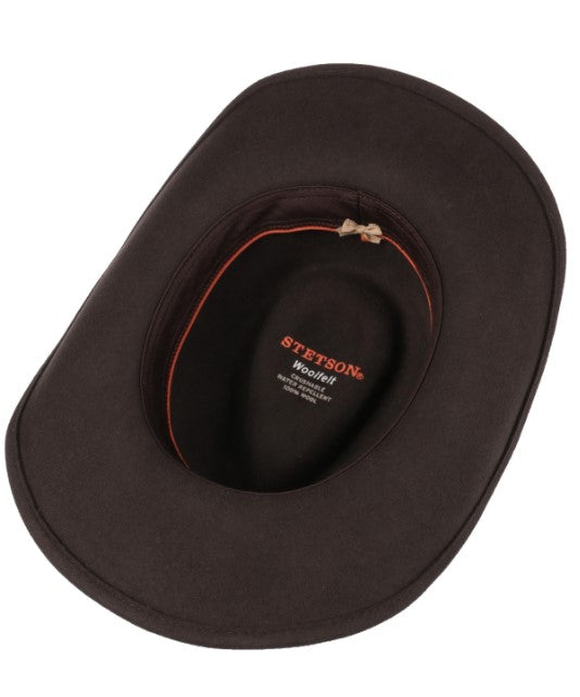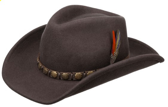 The extravagantly cut trim, adorned with metallic cross-shaped appliques, highlights the fashionable and rustic accents of this Western hat from Stetson USA. The high-quality ASAHI GUARD wool allows your hat to preserve its new appearance for longer, protecting it from water, oil, dust, etc.